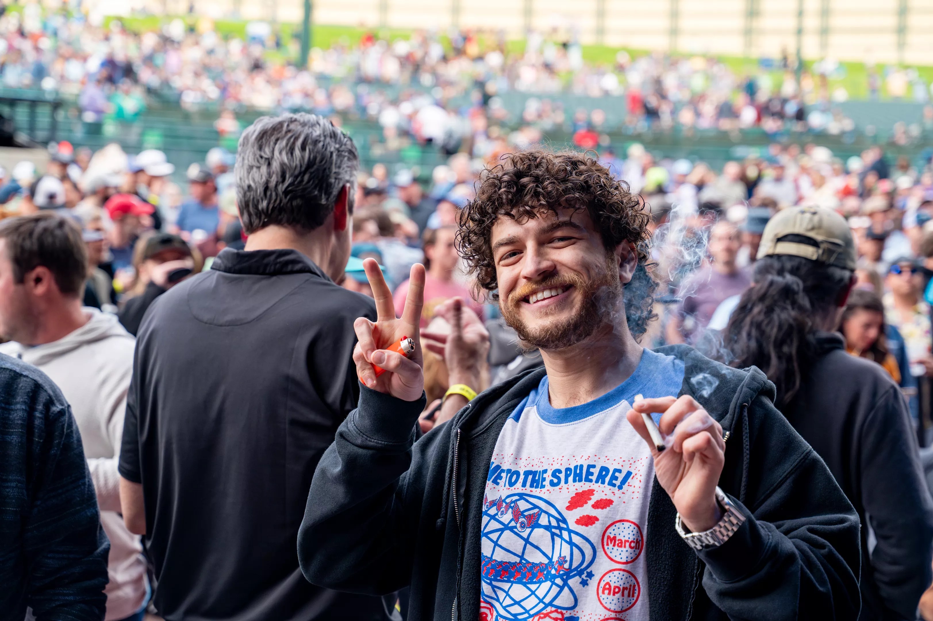 Fans crowd the rail early to meet their friends and get the best spot