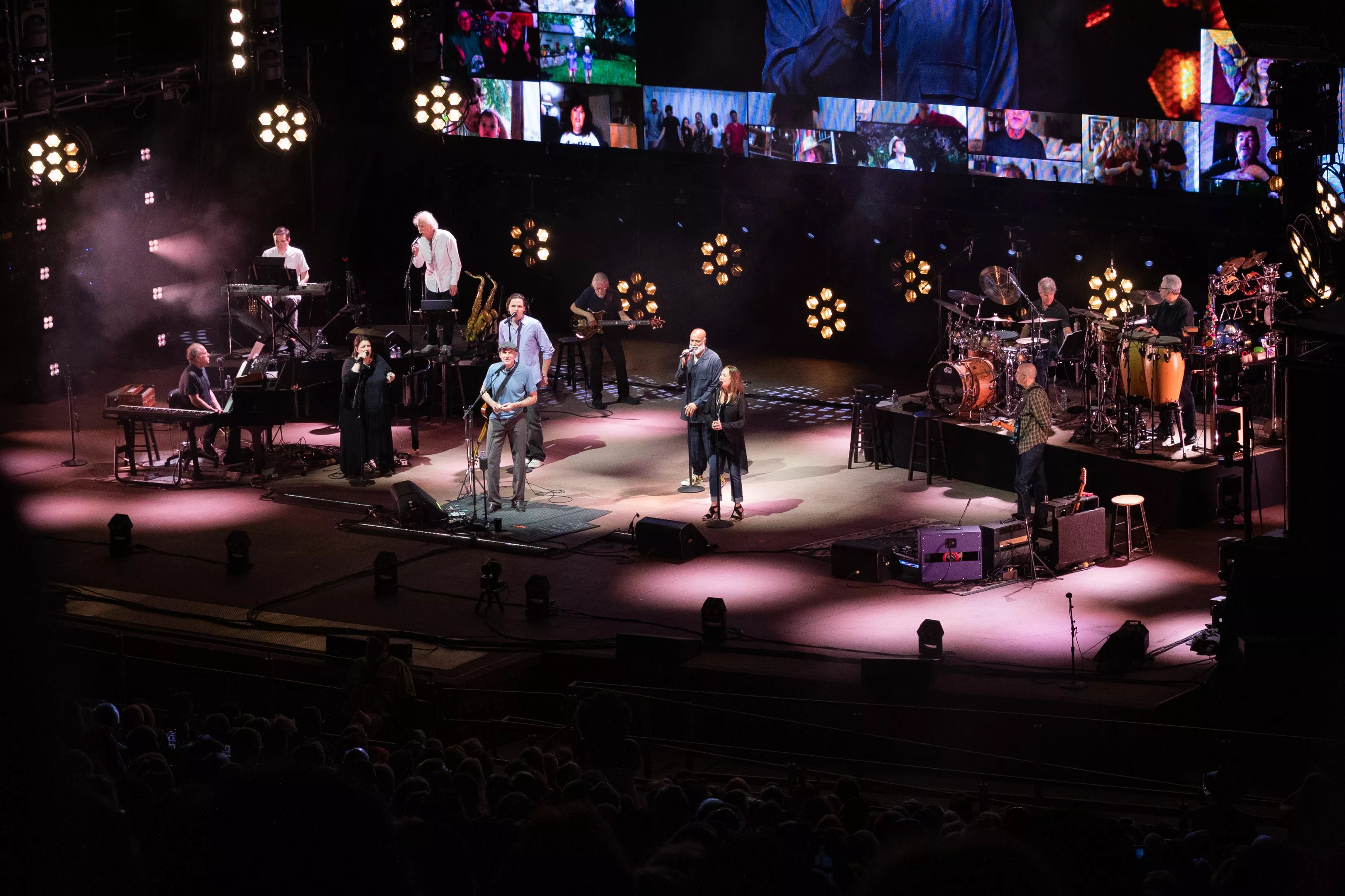 After coming back out to a raucous crowd, Taylor – equipped with an electric guitar over his typical acoustic – set out for a rocking rendition of “Steamroller.” Lou Marini, Max Darché, Michael Landau and Larry Goldings each had stellar, lengthy solos. By now, the entire crowd was on its feet, as Taylor was emoting across the stage with his band.