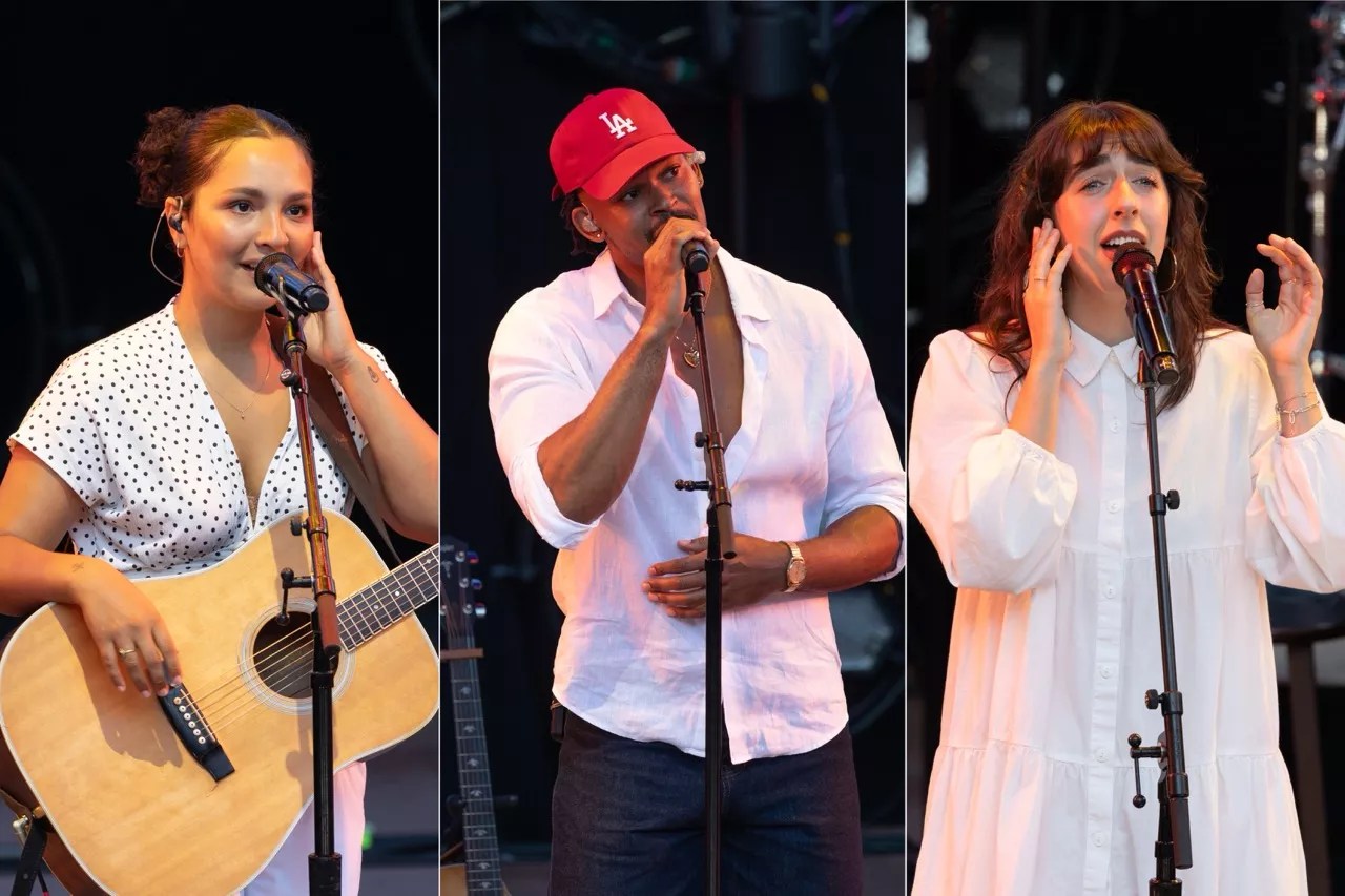 Prior to taking the stage, the folk-pop trio, Tiny Habits, opened for Taylor with a thirty-minute set of mostly original music and one cover of Fleetwood Mac’s “Landslide.” The group of three friends, Cinya Khan, Maya Rae and Judah Mayowa, released its first EP in April 2023, and have since recorded songs with Lizzy McAlpine and Kacey Musgraves, and is opening for Taylor on his summer tour.