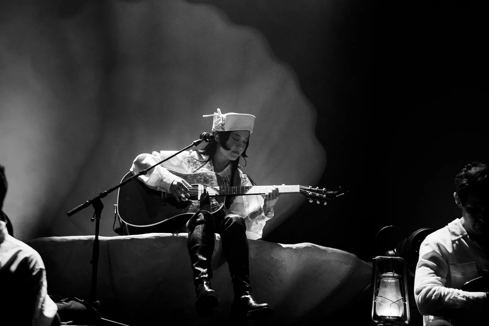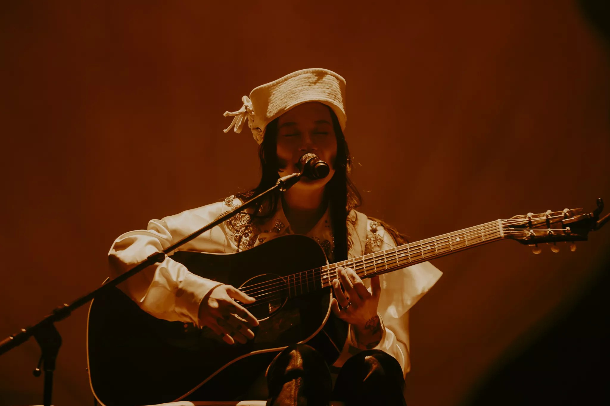 With a spotlight fixed on her for much of the song, Zauner’s soft vocals reverberated through the room on “Posing for Cars,” singing: