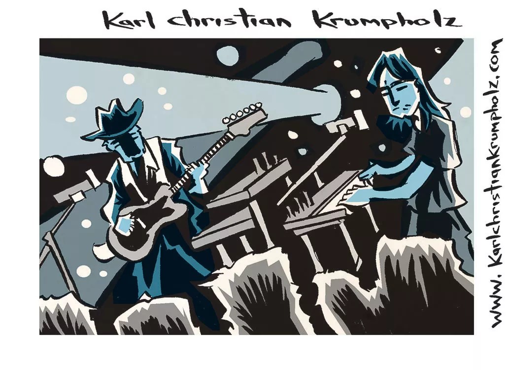 Kyle Williams: “One day, my bandmate Nathan Rogers and I were hanging out and shopping online. I said, ‘Oh, man, check out these jackets.’ My computer screen displayed the image of a bomber jacket. This wasn’t just any bomber jacket, though – it was a fiber-optic bomber jacket that lights up. ‘Those are perfect,’ he agreed, followed by, ‘Wait! Look under the similar items. What about a hologram?’ We looked at each other eagerly for a moment before Nathan clicked ‘Add to Order.’ Karl Christian Krumpholz “We took turns excitedly typing, filling in our information and ultimately clicking on ‘Send Order.’ Exhaling, I said, ‘This is going to be great.’ Karl Christian Krumpholz
