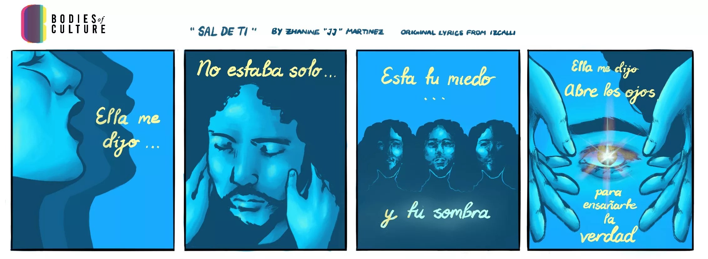 “Sal de Ti.” Lyrics by Miguel Avina of Izcalli. Art by Zhanine JJ Martinez.