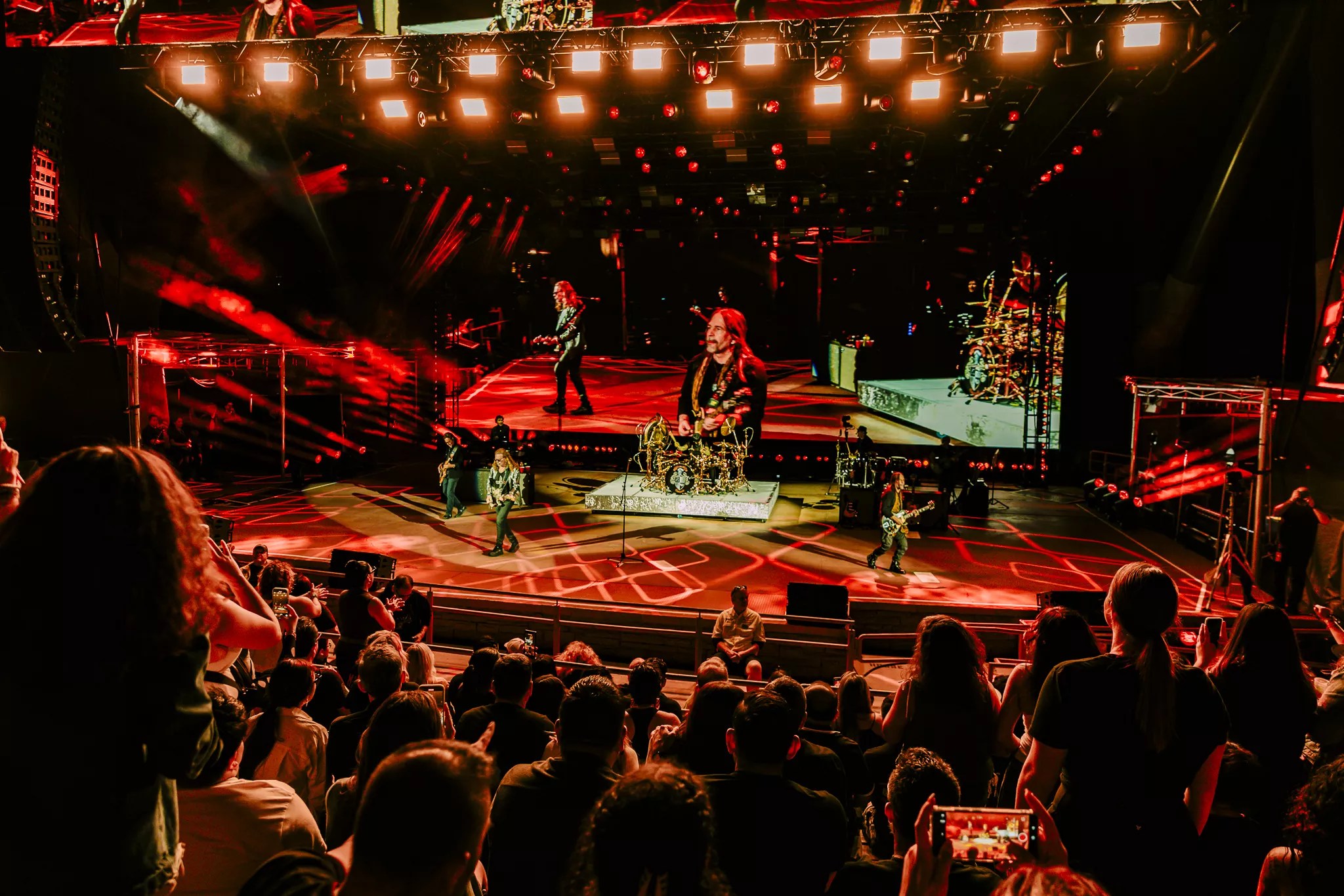After a nine-month break from being on the road, Mexican pop-rock band Maná is back and more united than ever for its eleventh concert tour, the Vivir Sin Aire North América Tour. For nearly forty years, the four-piece has traveled the globe to perform such classic hits as “Oye Mi Amor” and “Rayando el Sol” to millions of fans. And fans at Red Rocks got to soak it all up on September 10. The Vivir Sin Aire tour (2025–2026) supports Latina entrepreneurs through the Latinas Luchonas initiative. Photography by: Brandon Johnson (@bjohnsonxar)