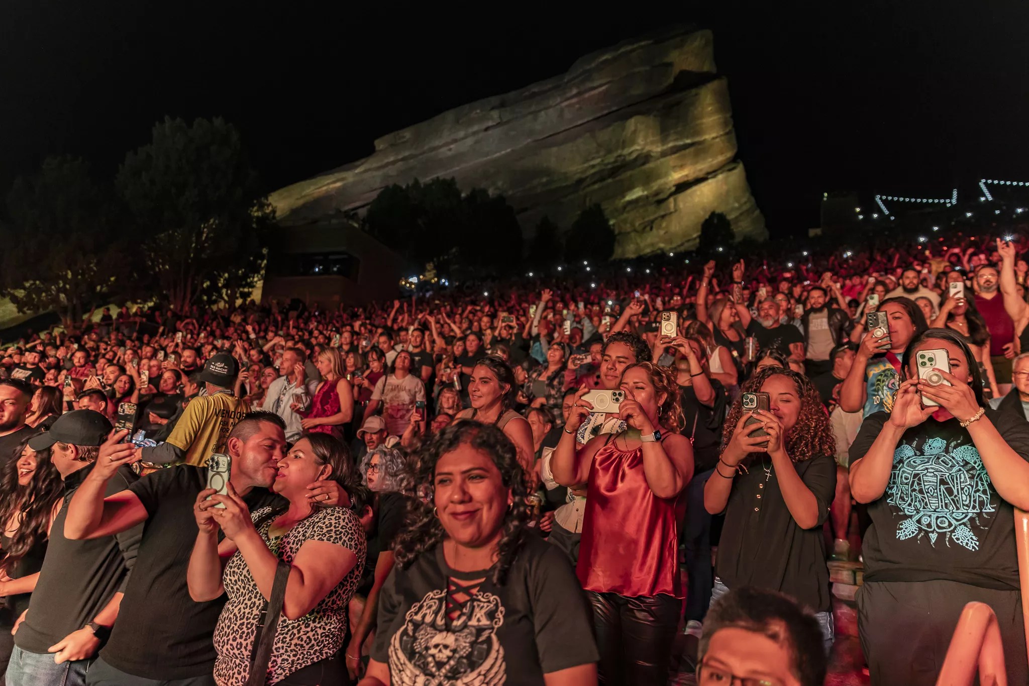 At Red Rocks, the band was welcomed by a sold-out crowd of fans from countries such as Mexico, Colombia and Honduras. Flickering lights lit up the amphitheater before Vallín played the electric guitar and Olvera walked onto the stage for the opener, “Dejame Entrar.” The band officially became Maná in 1986, inspired by the Polynesian word for “positive energy.” Photography by: Brandon Johnson (@bjohnsonxar)
