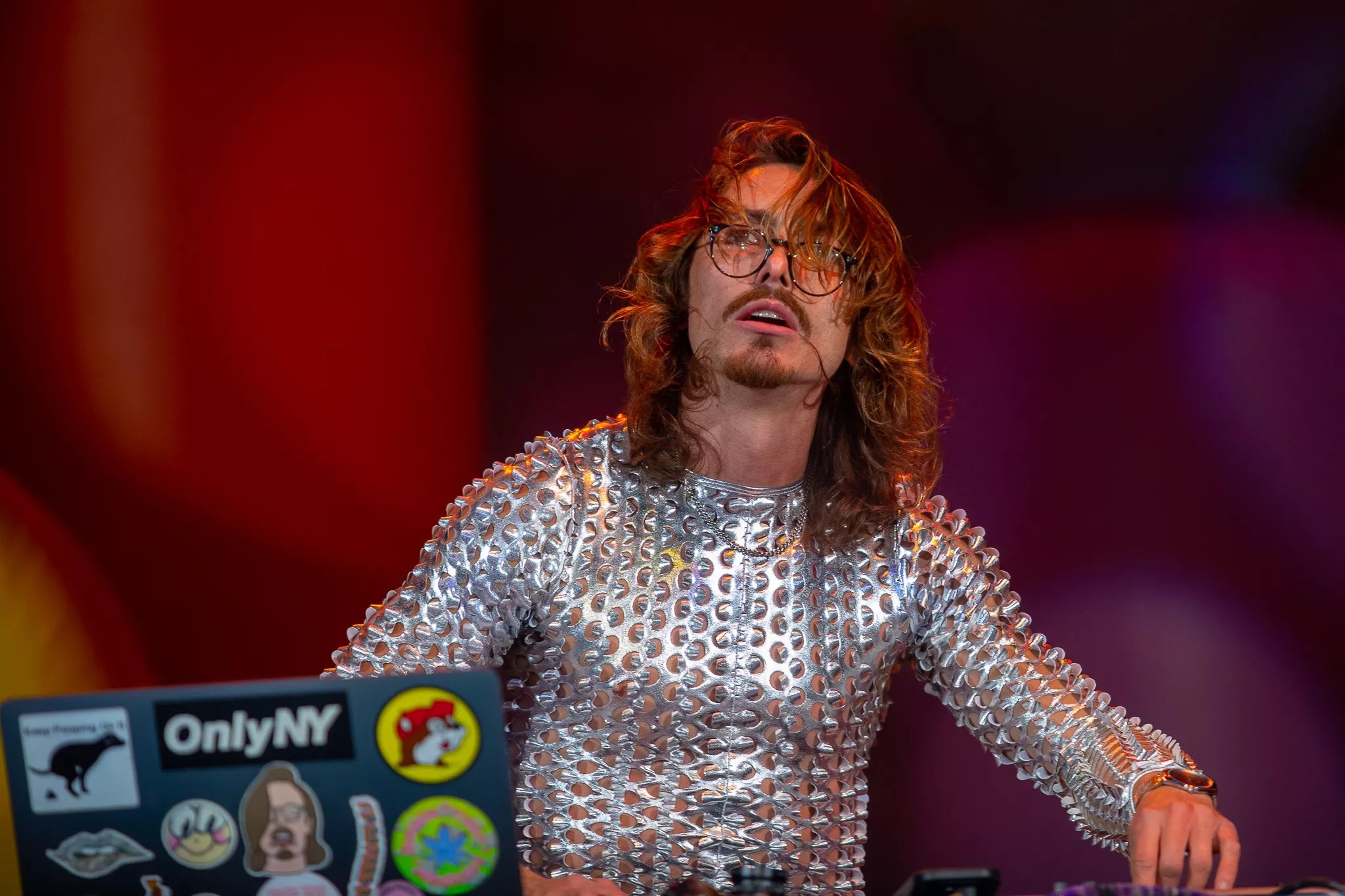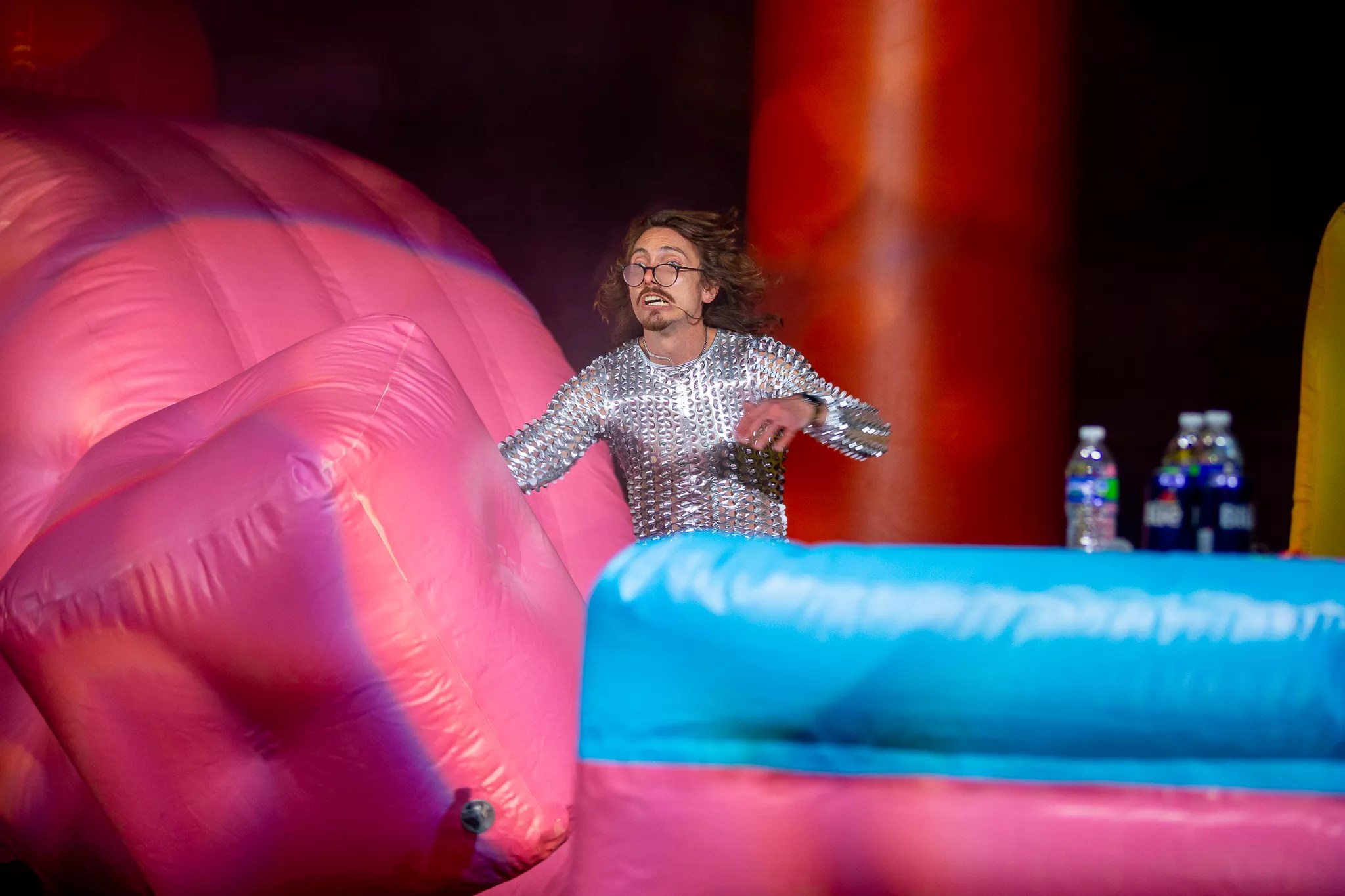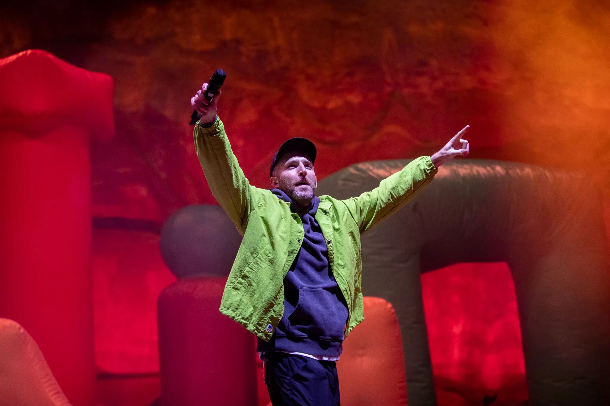 Rebillet played in front of a whimsical blow-up backdrop that he bounced and threw around during his set.