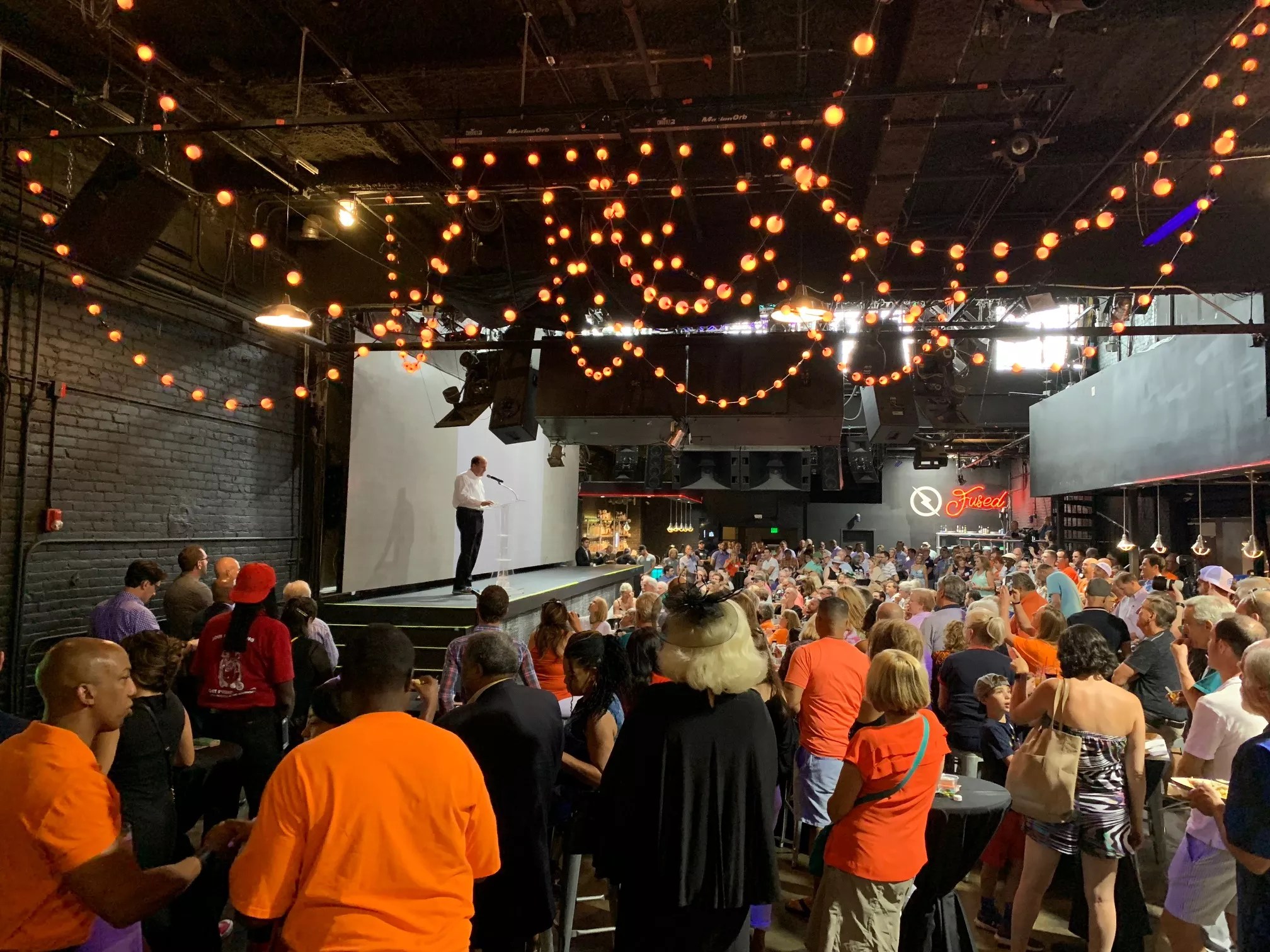 The room was packed with people wearing orange, Chernoff’s favorite color, and familiar faces, from drag queens to Governor Jared Polis. They were all members of Chernoff’s extended, and adopted, family, people who discovered a home at Tracks, whether they worked there or partied there or knew and supported those who did.