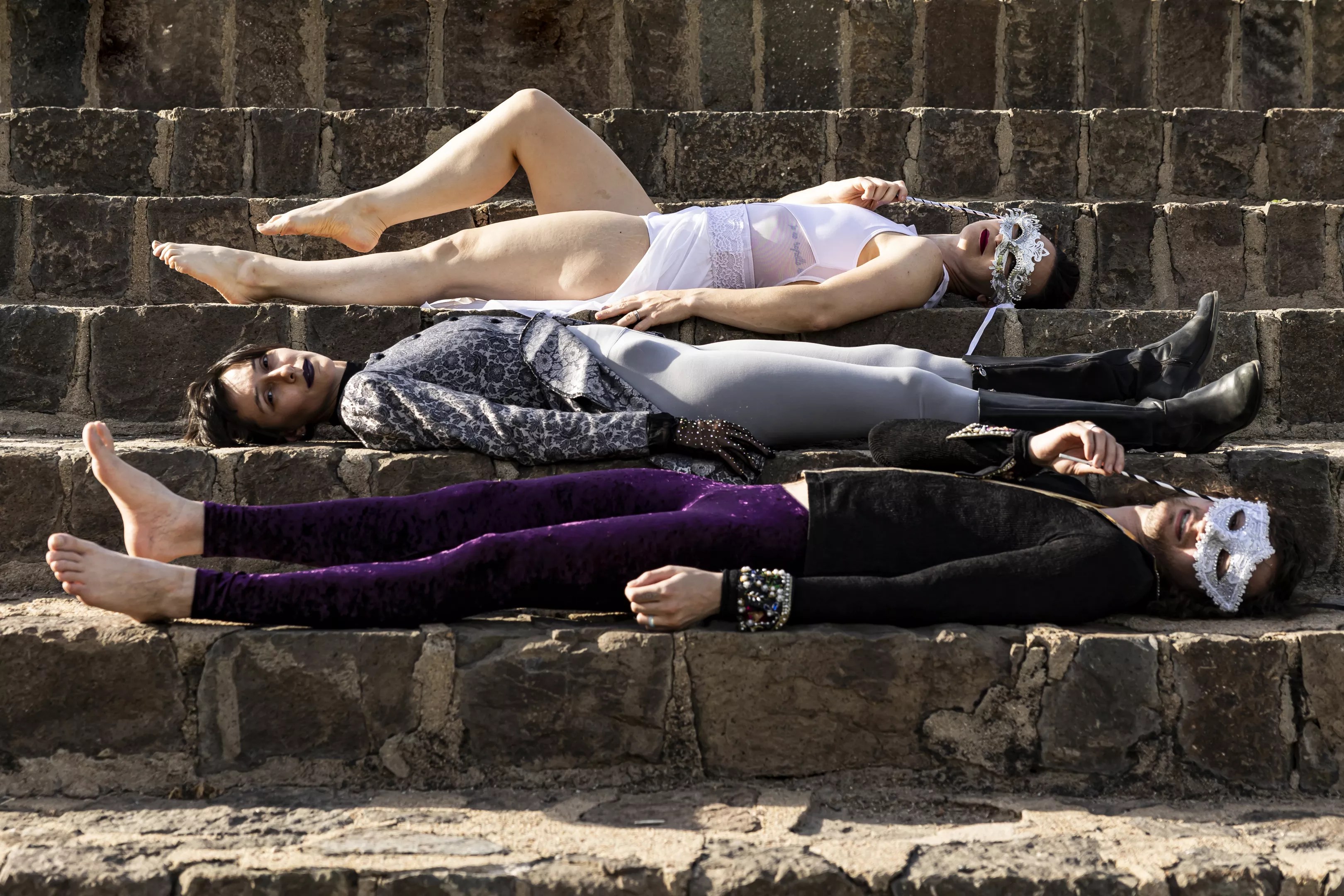Colorado native Amber Blais wants to take audiences out of this mundane world. Blais is the director and owner of Starry Night Productions, which grew from her former group, Rainbow Militia, a collective of musicians and circus performers that did immersive events over Zoom during the pandemic. It even had a traveling circus wagon that would visit low-income neighborhoods around Denver, bringing performance to the people. But two years ago, Rainbow Militia disbanded, and Blais established Starry Night to carry on with the show – which, as we all know, must go on. Blais doing her aerialist work at Film on the Rocks in 2022. Martha Wirth Photography