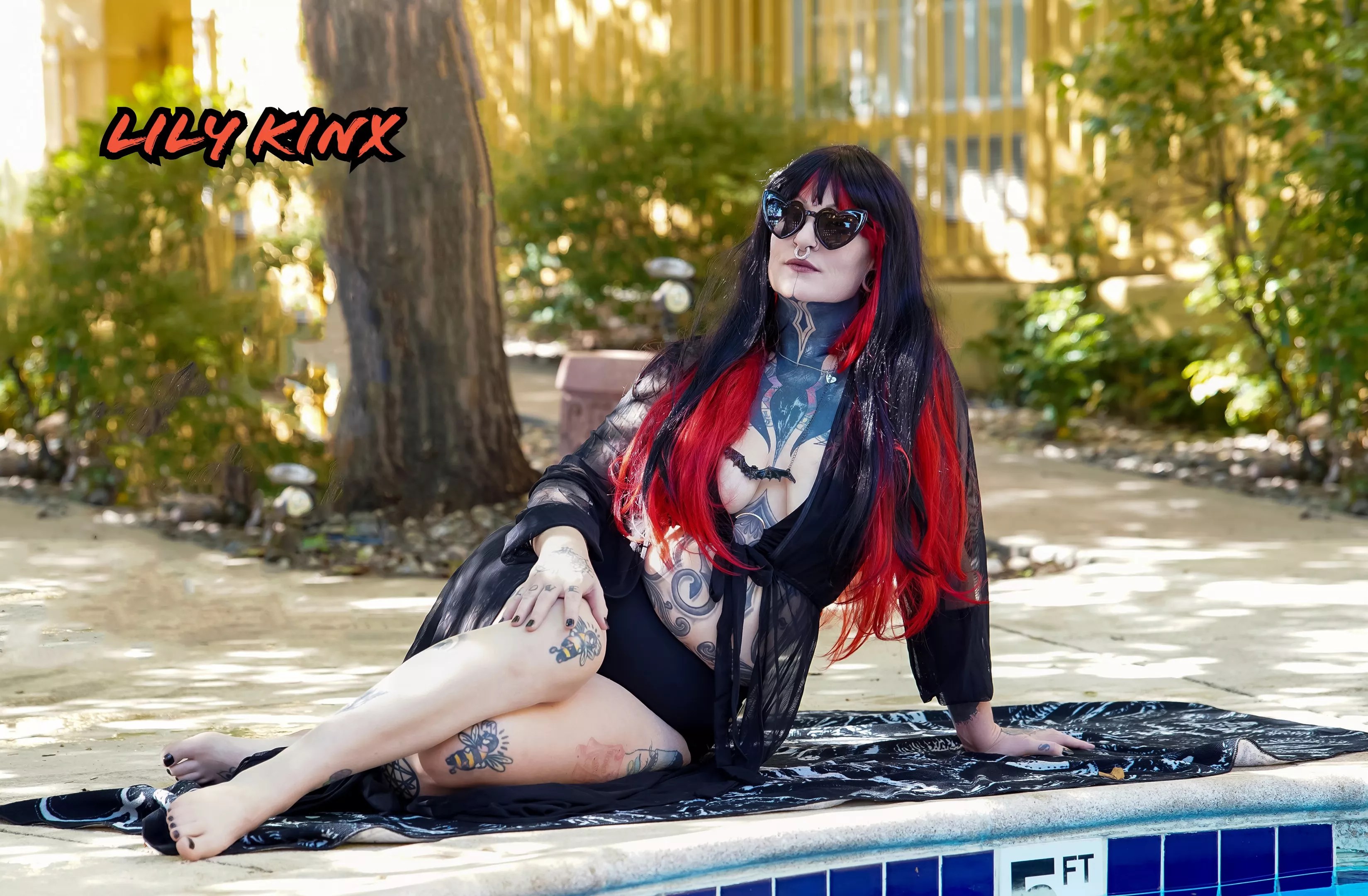 Kinx remembers how nervous she was before her first photo shoot with Asche, but she quickly discovered that she could do whatever she wanted for the lens. Since then, she’s explored more risqué territory, but she still enjoys modeling new merch for a band the Metal Maidens support.