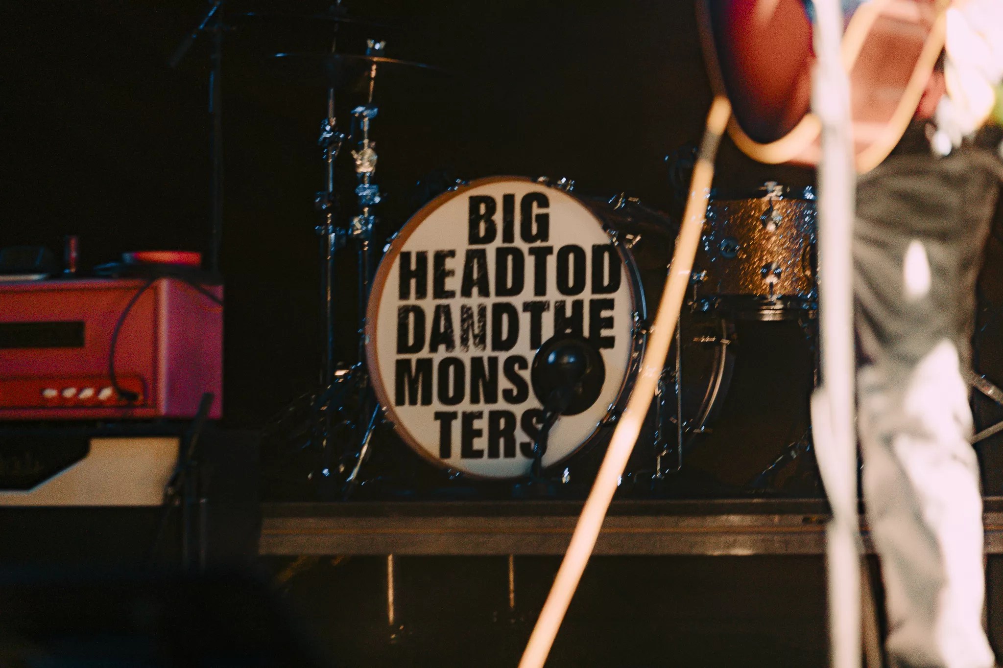 A picture showing Big Head Todd and the Monsters’ drum set displaying their band name.