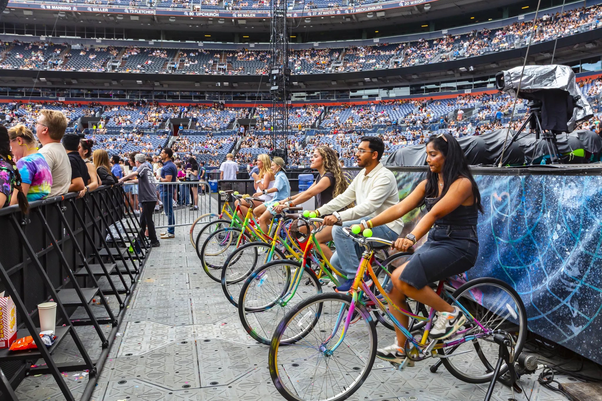 Fans help power the Coldplay concert by riding bicycles at Empower Field at Mile High.