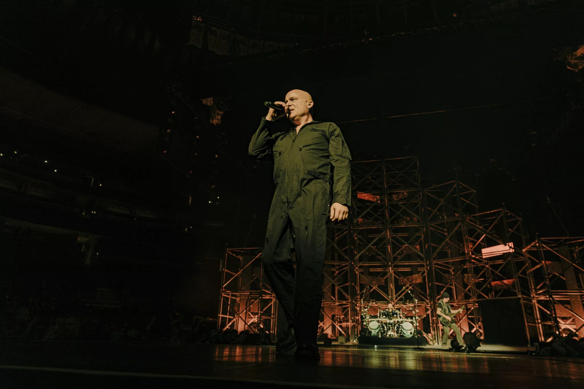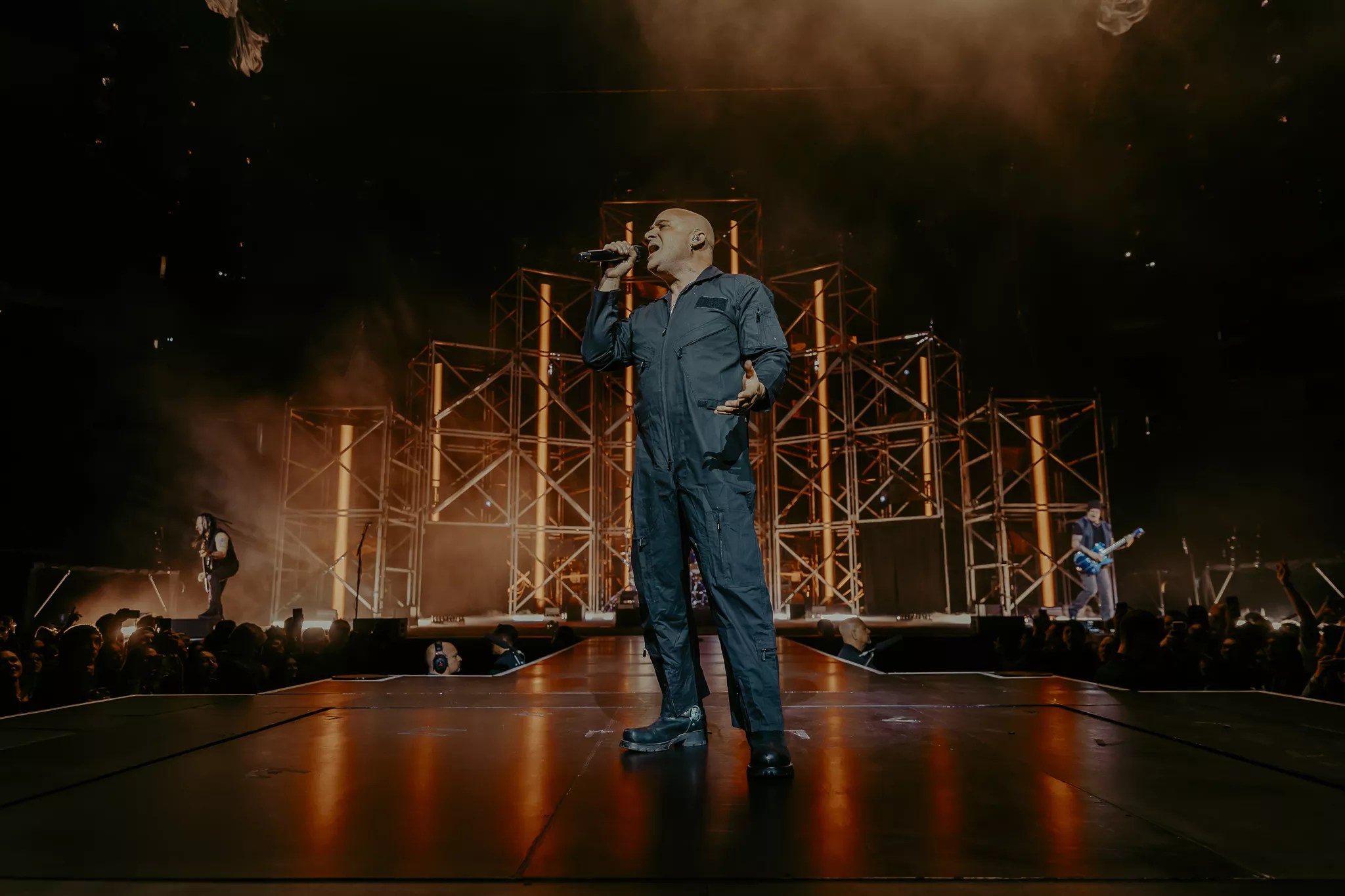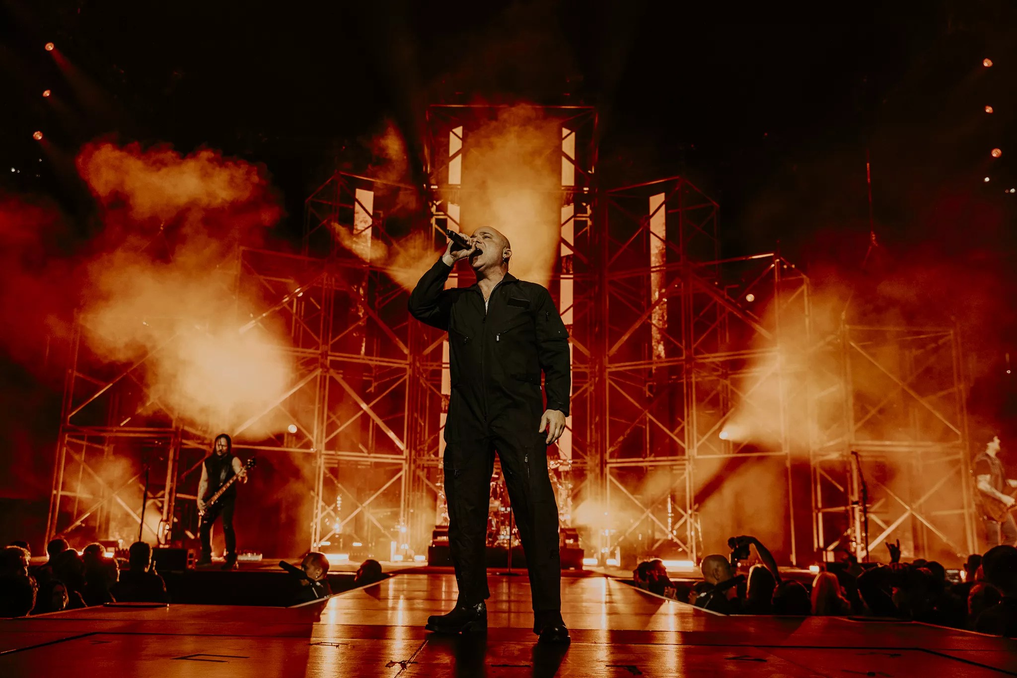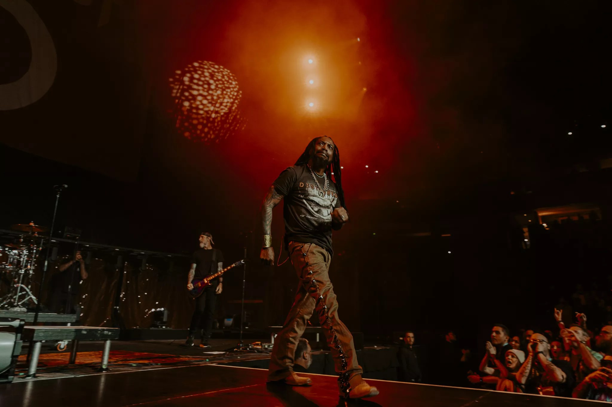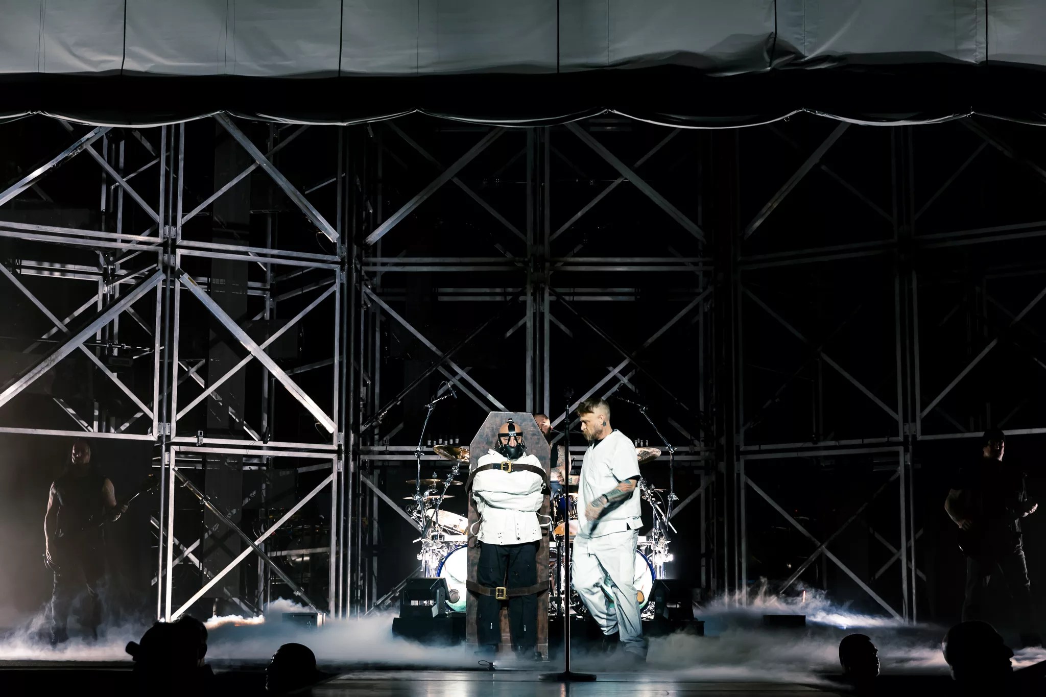 Disturbed’s performance kicked off with David Draiman being brought to the stage in a Hannibal Lecter costume.