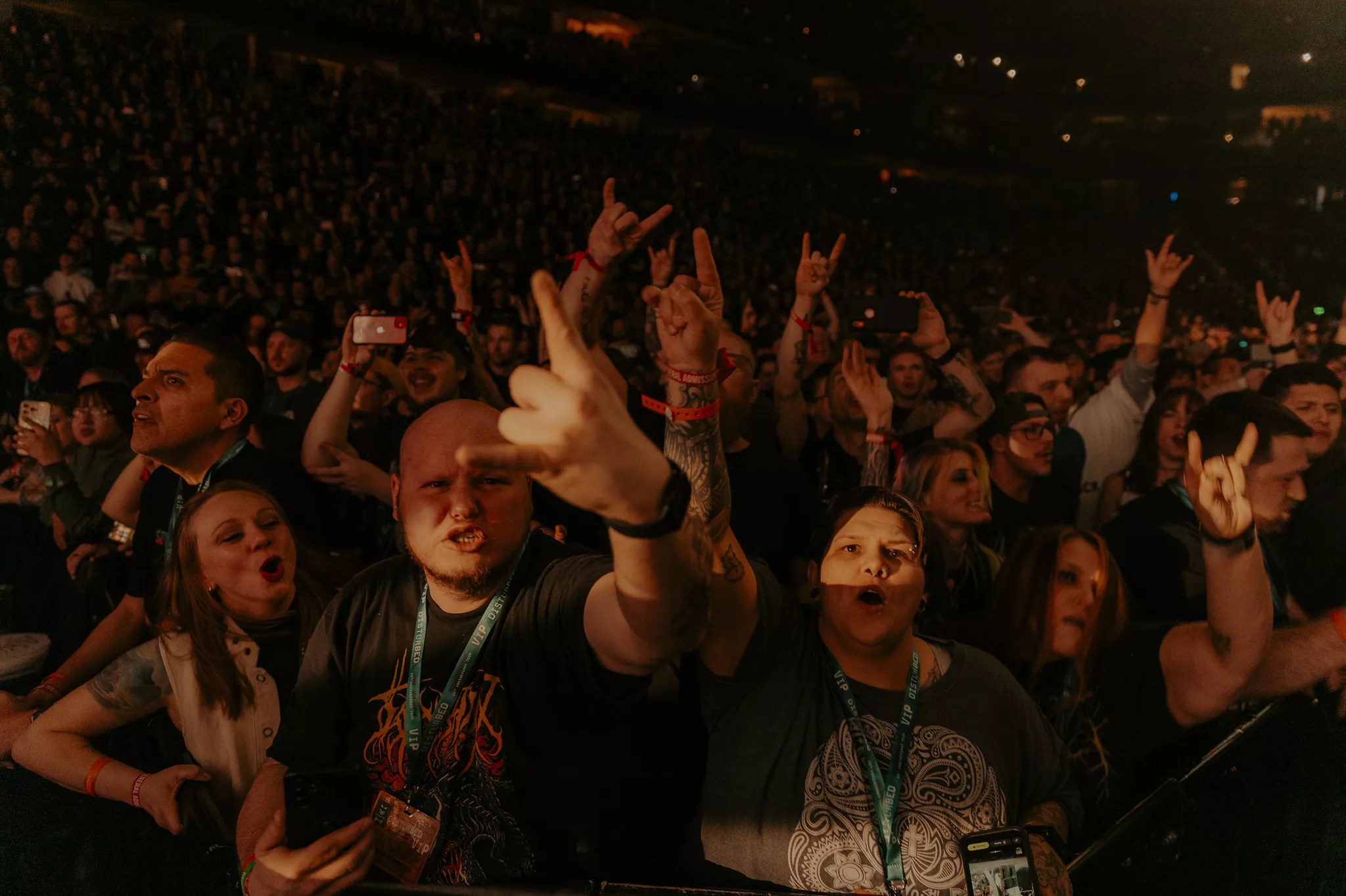 Denver got to witness a showcase of Disturbed’s best material at Ball Arena on February 27, as the band came to town on tour to celebrate the 25th anniversary of The Sickness with openers Three Days Grace and Sevendust. See photos from the show below: