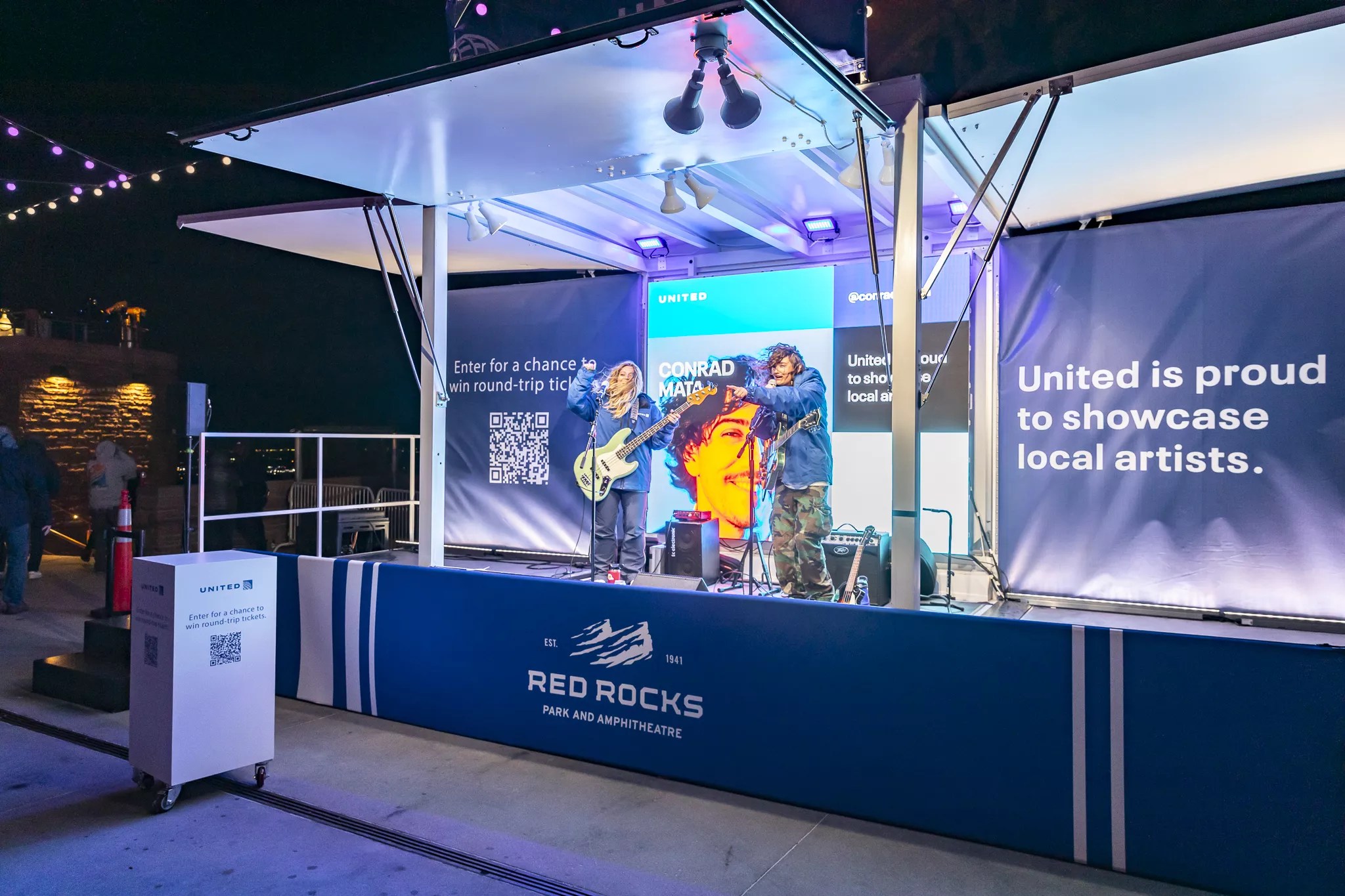 United Airlines held a small music performance at the top of Red Rocks with a local band during intermission before the Black Keys came on.