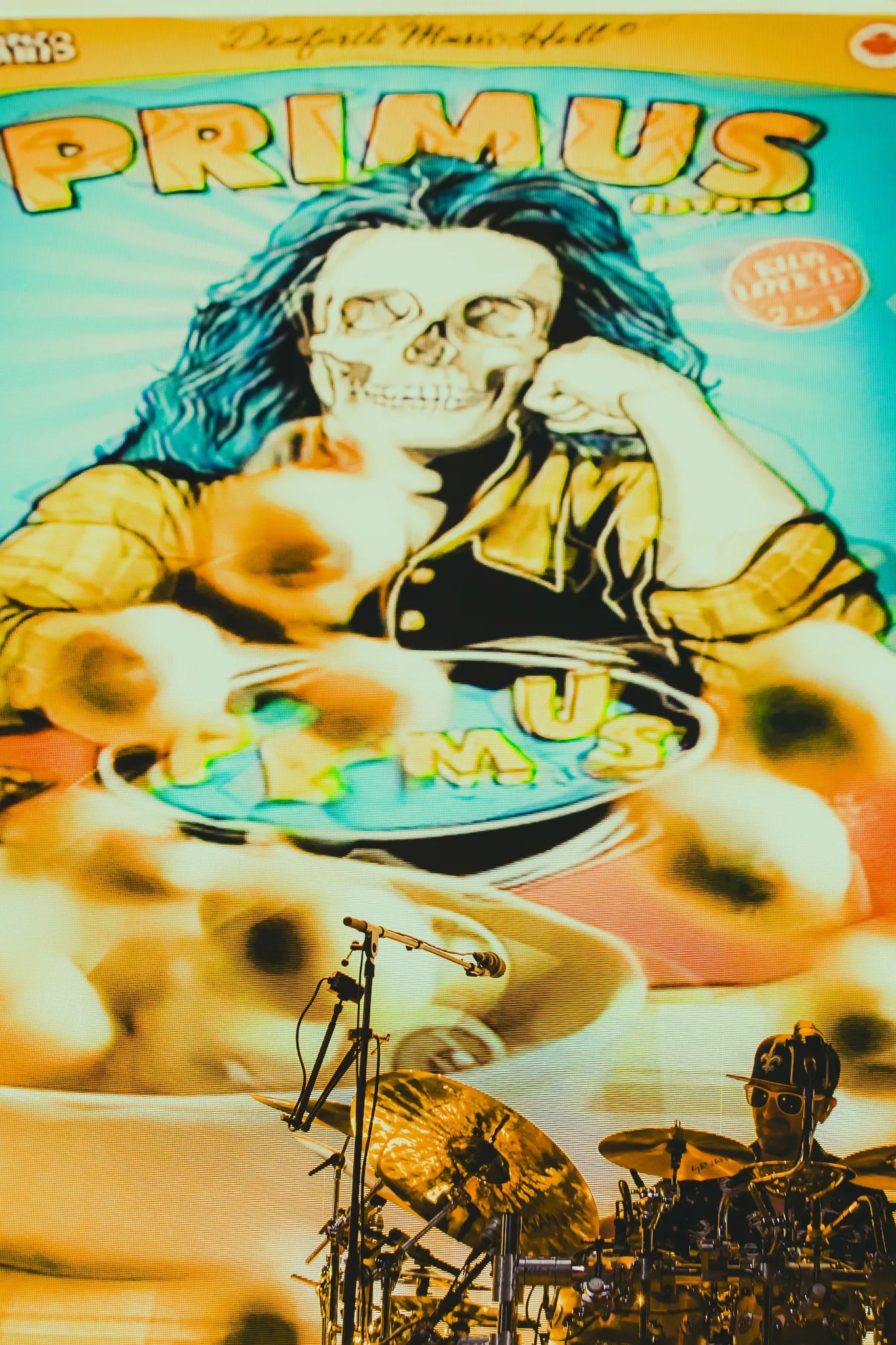 By the time Claypool introduced Hoffman, the drummer had already shown his chops, unleashing a mind-boggling pattern of riffs that led to a cutting crescendo for “Groundhog’s Day.” When Primus began performing “Duchess and the Proverbial Mind Spread,” he was fully locked in, completely one with his instrument. That song was one that made him stand out during his Drum Derby audition process – most other drummers requested to play “Last Salmon Man” – and Hoffman showcased his wizardry which landed him the gig.