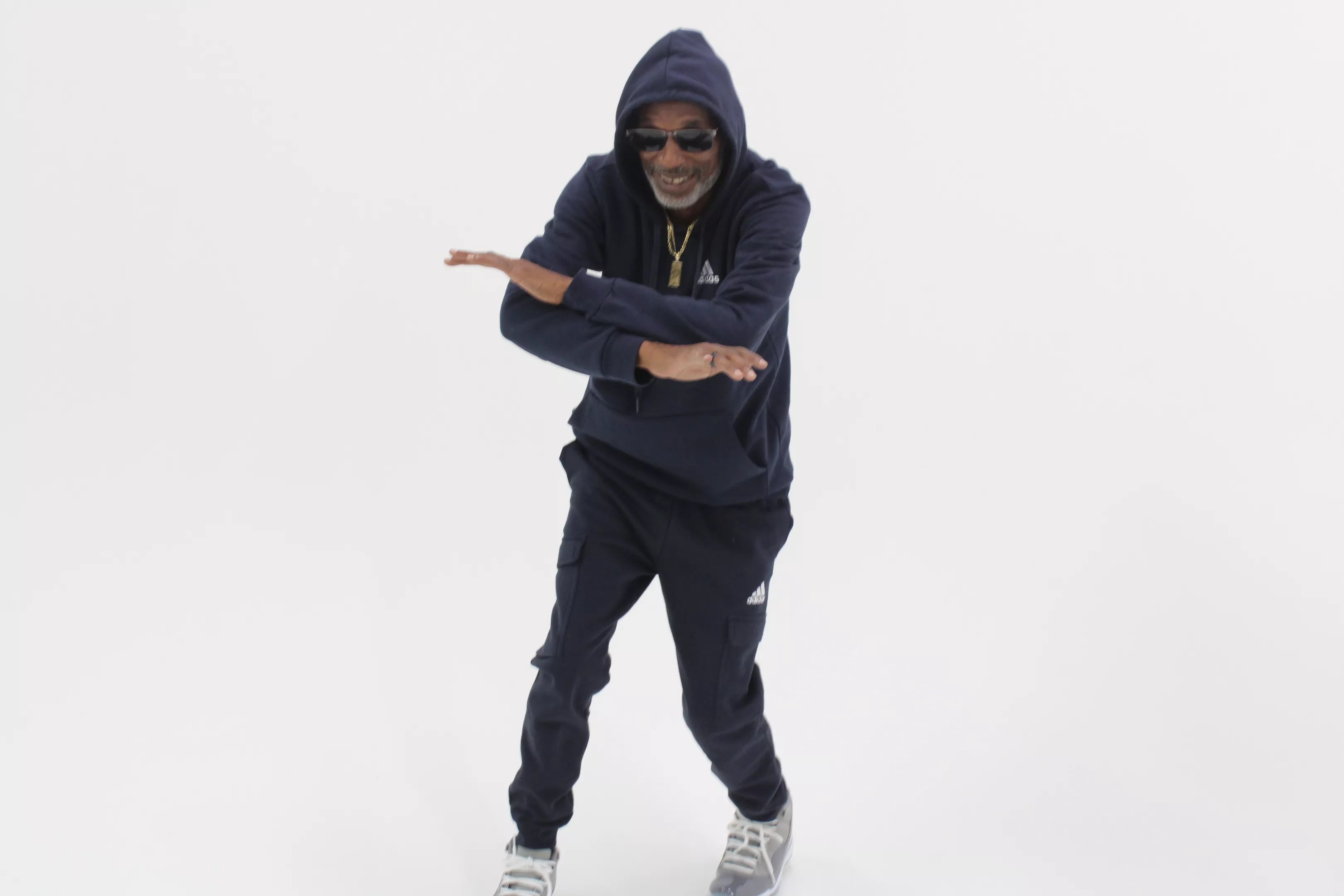 Another foundational element of hip-hop that’s gone by the wayside is off-the-dome freestyle. In his 58 years, Nipper has only written one rhyme, and that was actually borrowed from a middle school classmate, Robbie Rock. “I would bang on the desk, and he would rhyme. That was the first time I kind of heard the rhymes. And I said, ‘Yo, make me one.’ It was ‘Hello, my mellows, my name is Robbie, transmitted to you from a third galaxy,’ and I just switched my name. That was the rhyme that got me in all these crews. I just had one rhyme! When I battled Slick Rick, that was the one rhyme! But what I had was stage presence. I was able to move the crowd,” he says.