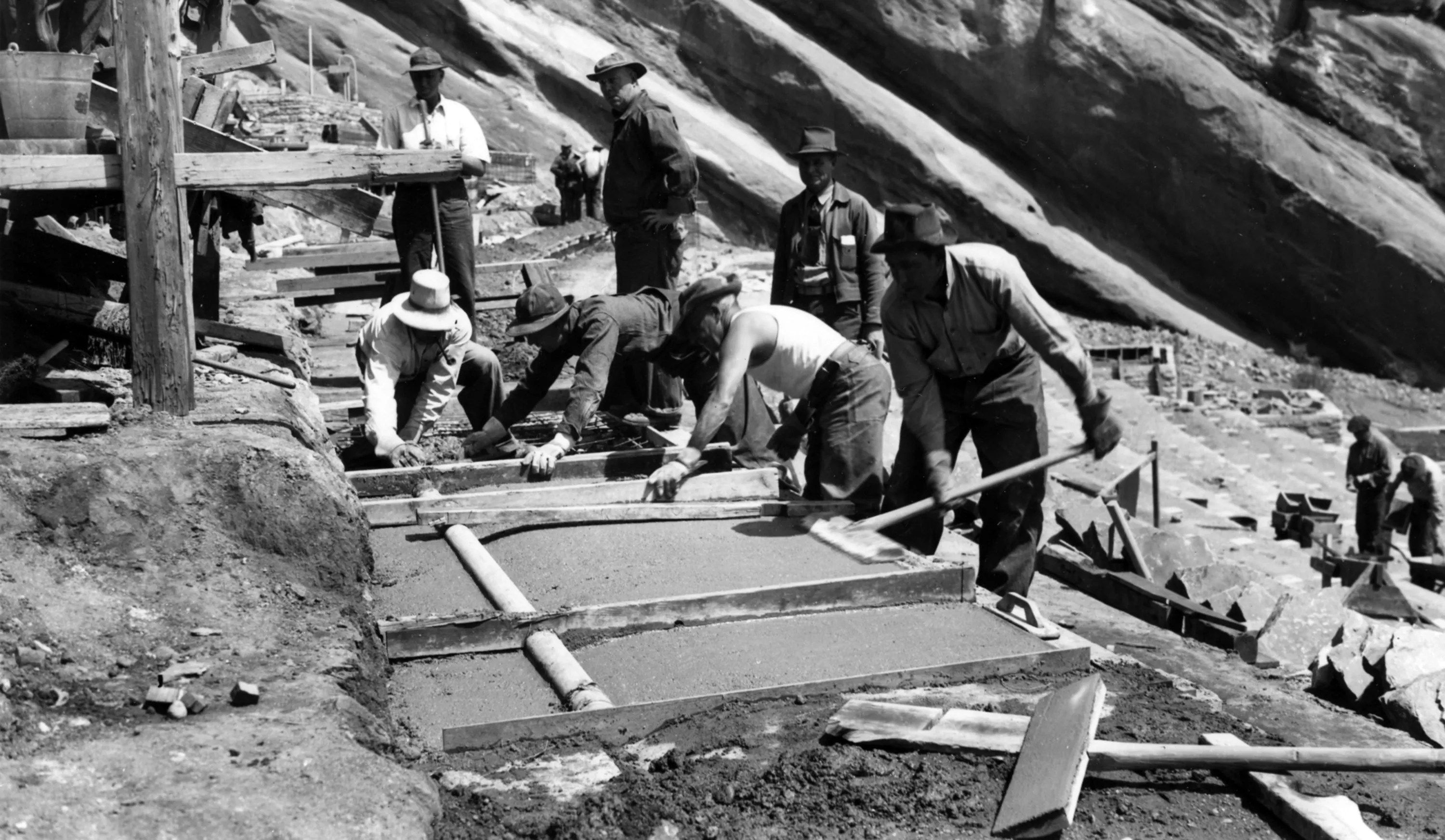 Construction began in 1936 through the Civilian Concervation Corps and the Works Progress Administration.