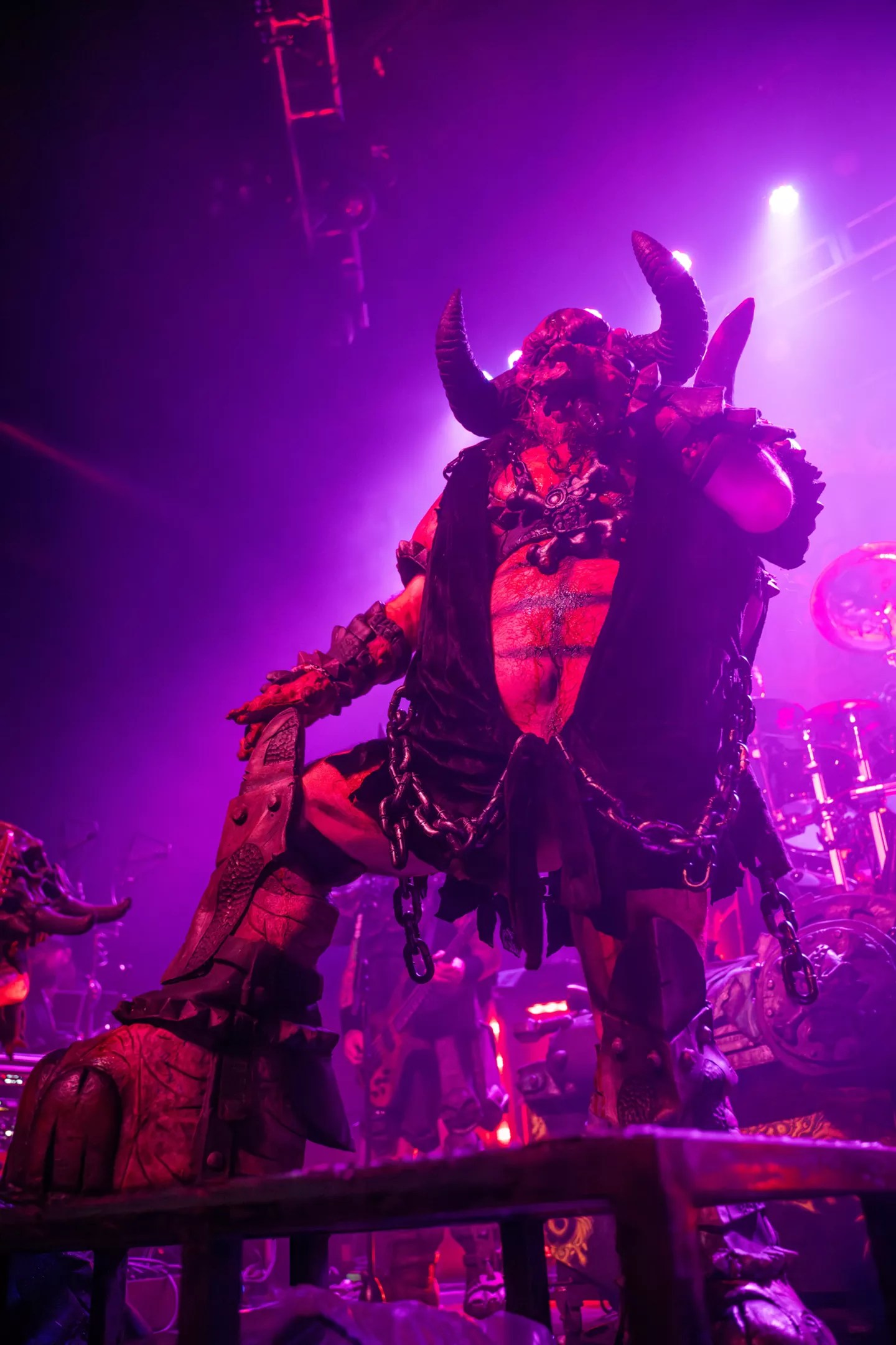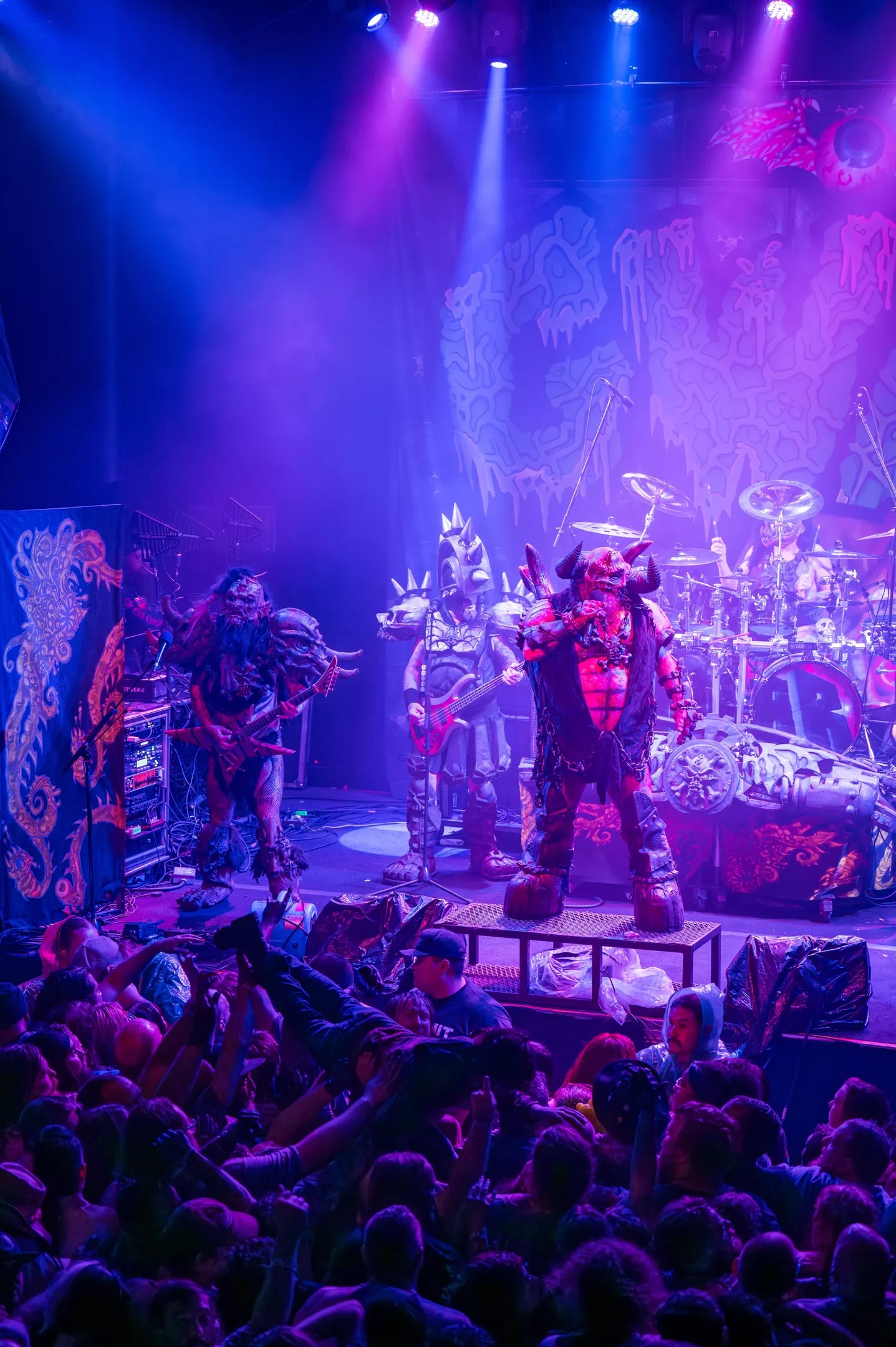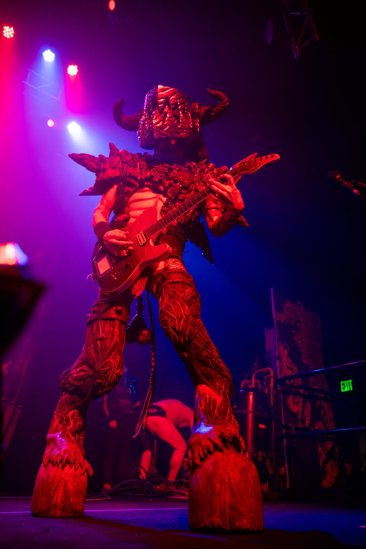 The night began with sets from Squid Pisser, whose vocalist/guitarist Tommy Meehan is the latest GWAR recruit as Grodius Maximus, and Dark Funeral, whose frontman led cringe repetitions of “Hail Satan,” which came across as edgy as a wooden spoon. (I couldn’t help but think of the boys attempting to be edgelords at my Catholic middle school.) As we waited for GWAR to begin, the audience was treated to a Rick Roll with the speakers playing “Never Gonna Give You Up,” followed by the King of the Hill soundtrack, Miley Cyrus’s “Party in the USA” and LMFAO’s “Party Rock Anthem.”