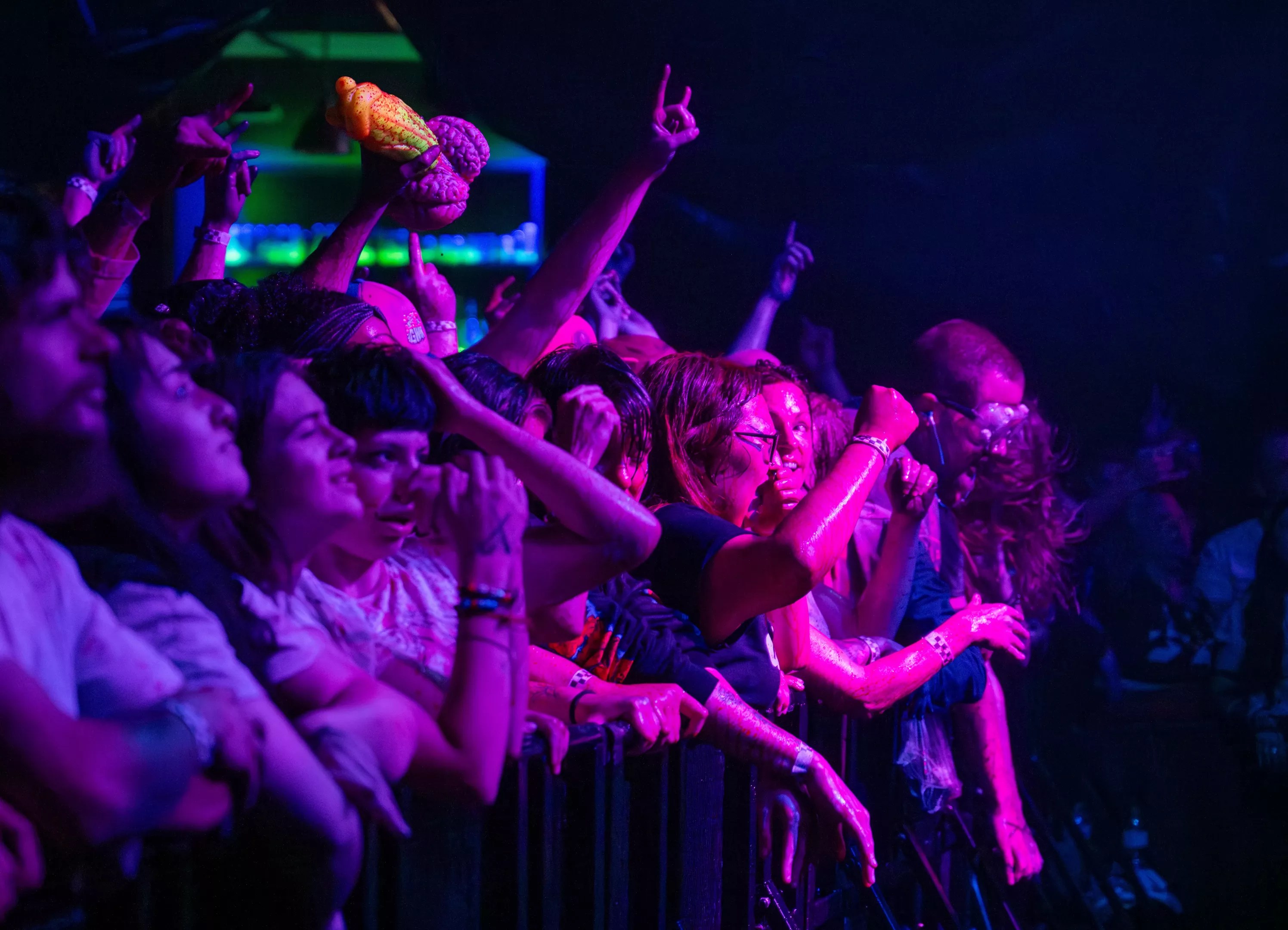 Of course, it wasn’t long before things got dark. GWAR thundered on stage and wrought a storm of metal music. The venue was completely stuffed with fans in white T-shirts and even wedding dresses, ready for the band to make its mark with blasts of fake blood and other bodily fluids (that’s also why the staff was wearing rain ponchos and the speakers and walls were covered in plastic). People crowdsurfed from the back of the venue to the front, where they were caught over the rail by the staff, then ran around to do it all over again.
