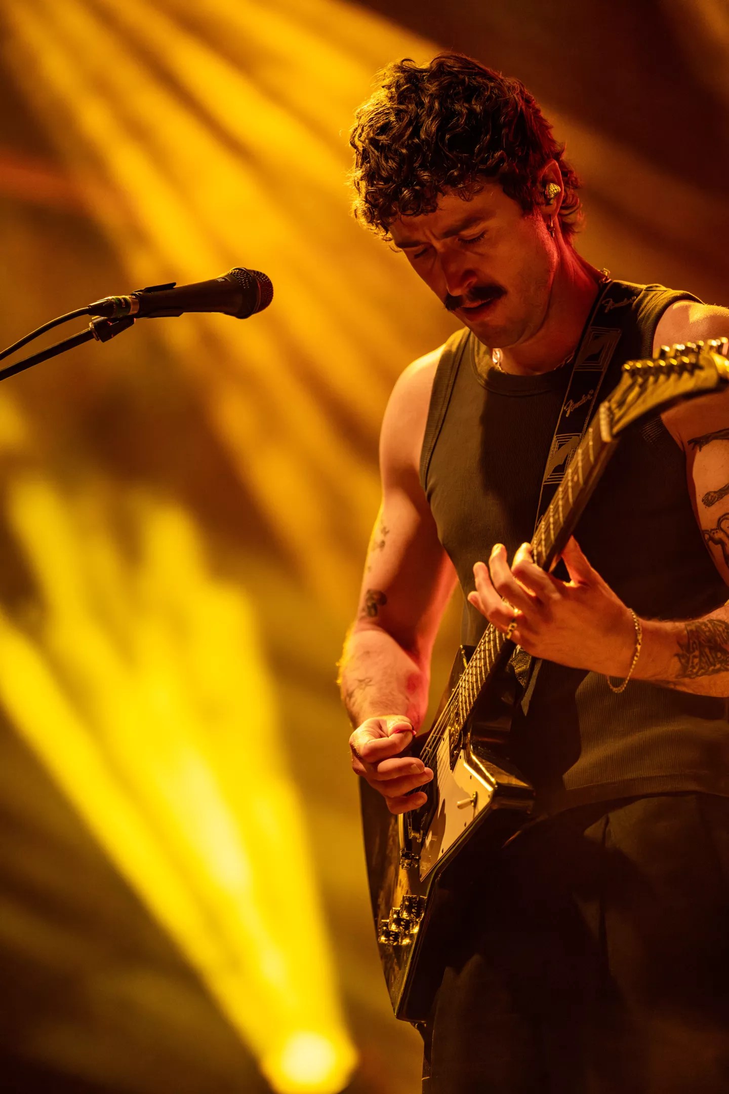 Ambrose singing at the edge of the stage.