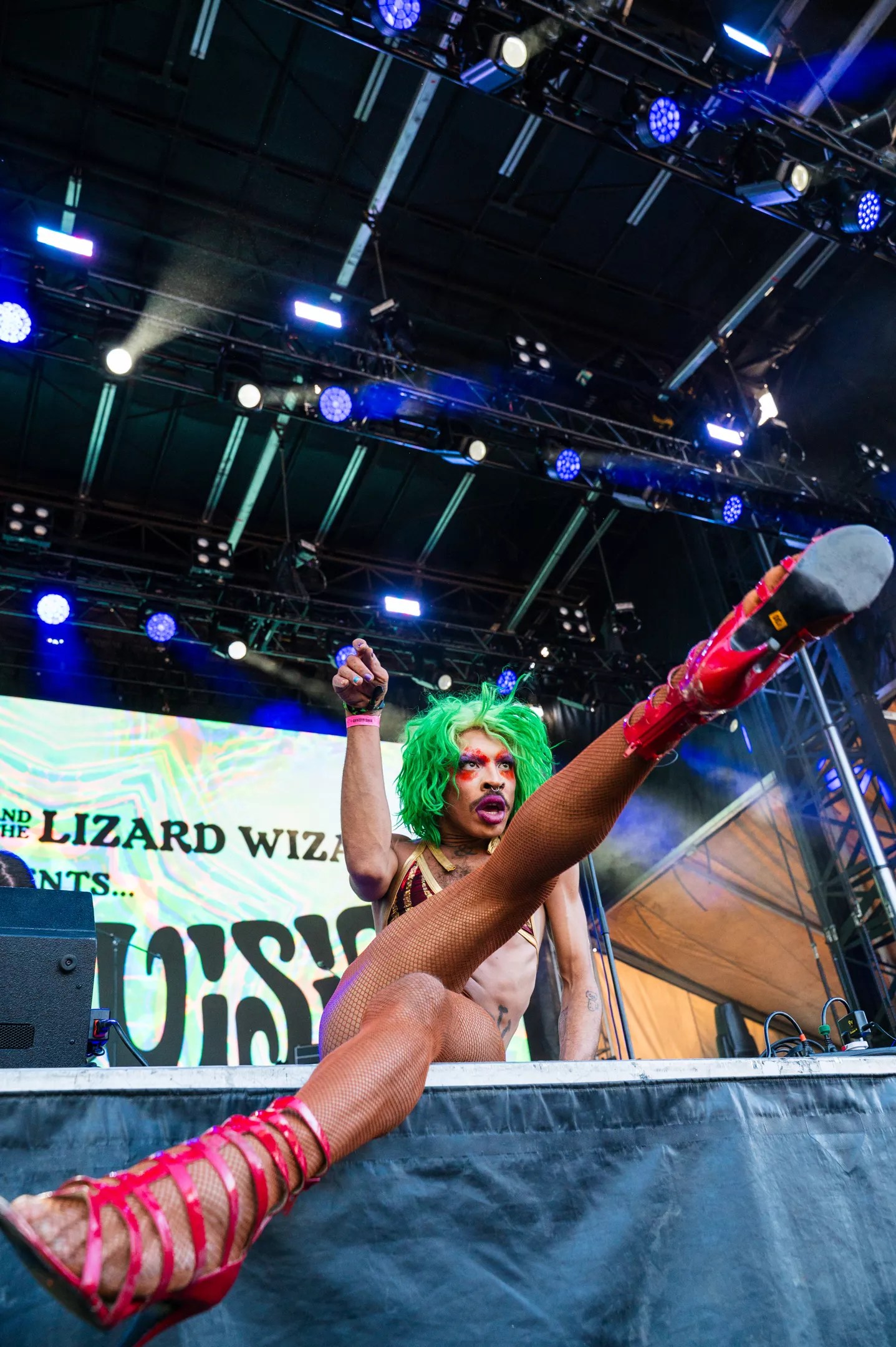 Drag performer Yvie Oddly warming up the crowd before King Gizzard.