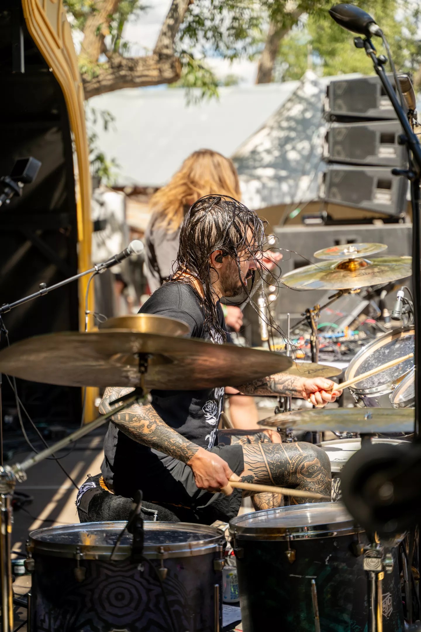 Similarly, drummer Jay Weinberg sat in Saturday for “Le Risque.” The current Suicidal Tendencies skin-beater, formerly of Slipknot (yes, that Slipknot), traveled to the edges of the Arkansas River to perform a Sunday side-stage set with Nashville harsh-noise maven Argus. The bleak blackened mayhem the two spewed dazed the crowd at first, but eventually motivated the mass to move accordingly. At one point, an incognito Cavanagh – sporting a Motorhead Iron Fist short-sleeve, Casa Bonita snapback and dark shades – could be seen enjoying the sonic extremity of it all. Fans lined the rail at Field of Vision. Ross Jones