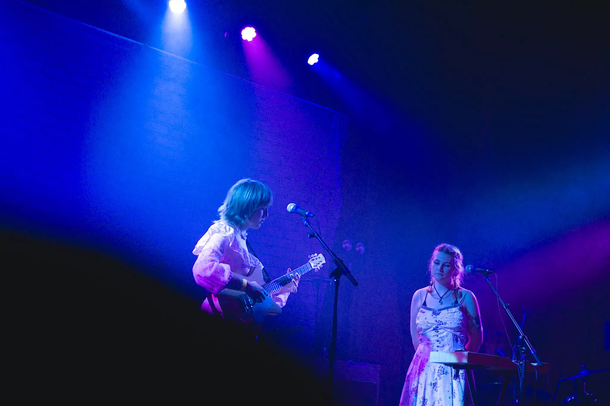 The night was opened by autumnal, a four-piece indie folk outfit based in Fort Collins. At the Bluebird, the band’s ethereal vocals and dynamic combination of space and noise were on full display, especially during “breathing,” a track that was released in March and was produced by Miranda Fling and Jim Eno of Spoon. Fort Collins-based quartet autumnal opens for Peter Bjorn and John at the Bluebird Theater on May 14, 2025. Left to right: Annalee Knies, Geneva Hein, and Nina Dorighi. Not pictured: Justice Murray Photography by: Jared Meyer (@j_radvibes)
