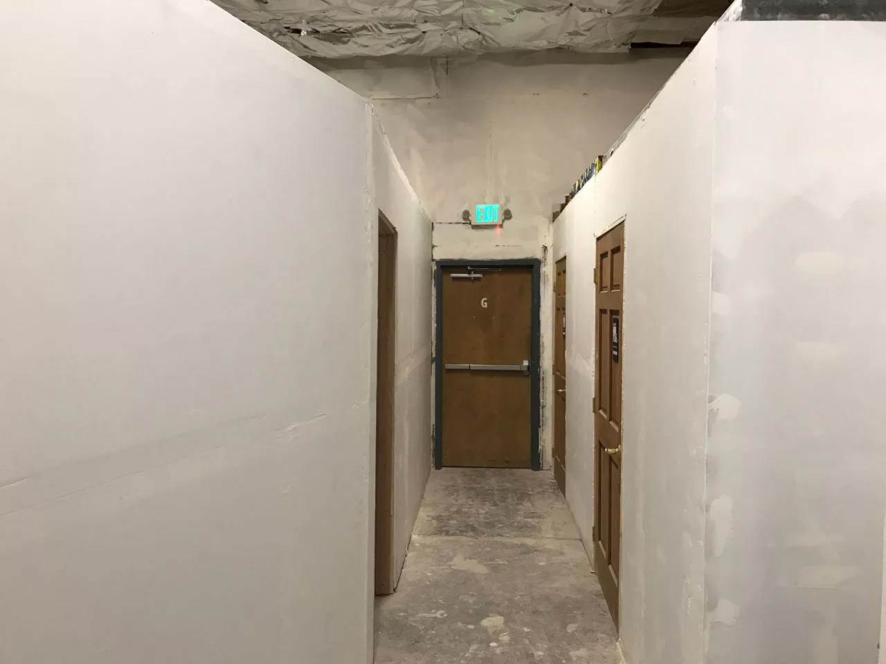 A newly constructed hallway leading toward the main room at Rhinoceropolis.