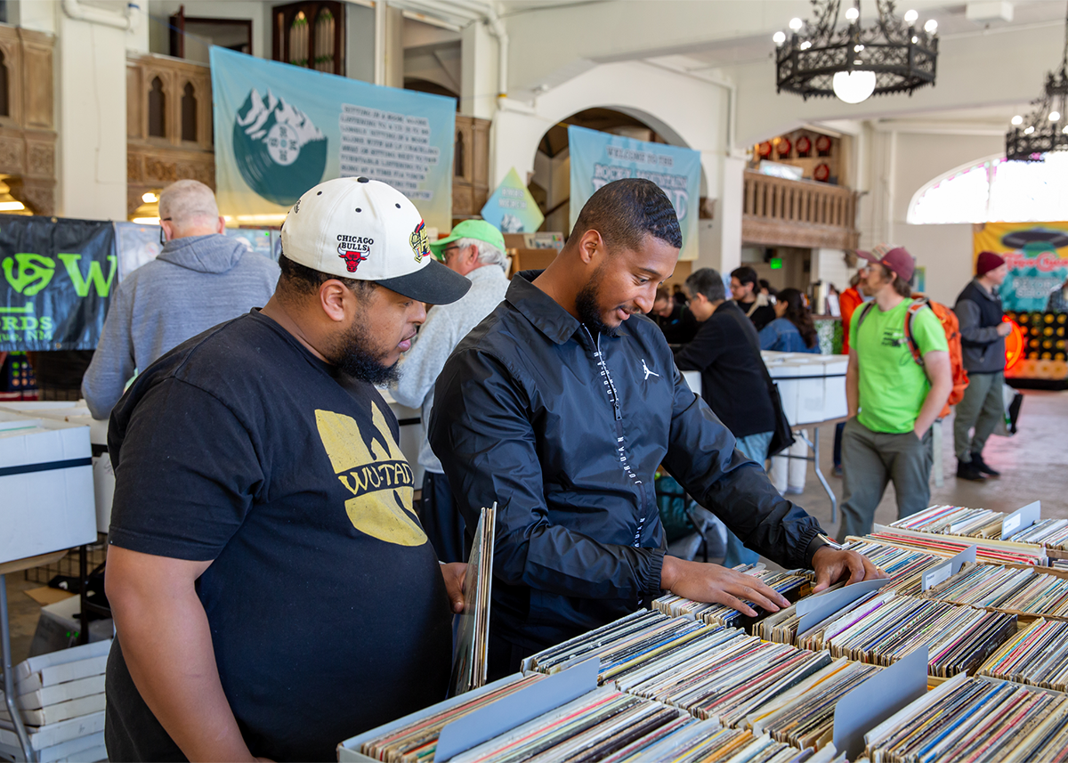This will be the trio’s fourth time operating out of the Sports Castle’s funky, classic Art Deco edifice at 1000 Broadway, which existed for years pre-pandemic as the Sports Authority and, for decades before that, as Gart Sports. The show fills the cavernous building’s three levels with vendors and vinyl, along with food trucks street-side and most other activities arranged on the first floor. This year’s trucks will be Hot Box and Flippin’ Birdz on Saturday, followed by Que Desmadre and Farm to Truck on Sunday.