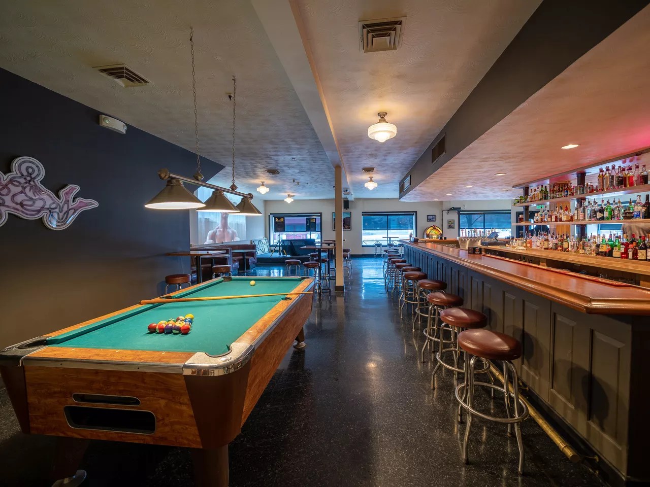 The upstairs pool room has been turned into a 75-person-capacity music venue with a new stage and sound system. Ashby says they’ll bring in a little bit of everything. “We didn’t really want to pigeonhole ourselves,” he explains. “The community here is really important to us. We really wanted to focus on independent stuff and provide a platform for local musicians, comedians – all kinds of stuff, really. It will be a little bit of everything.”