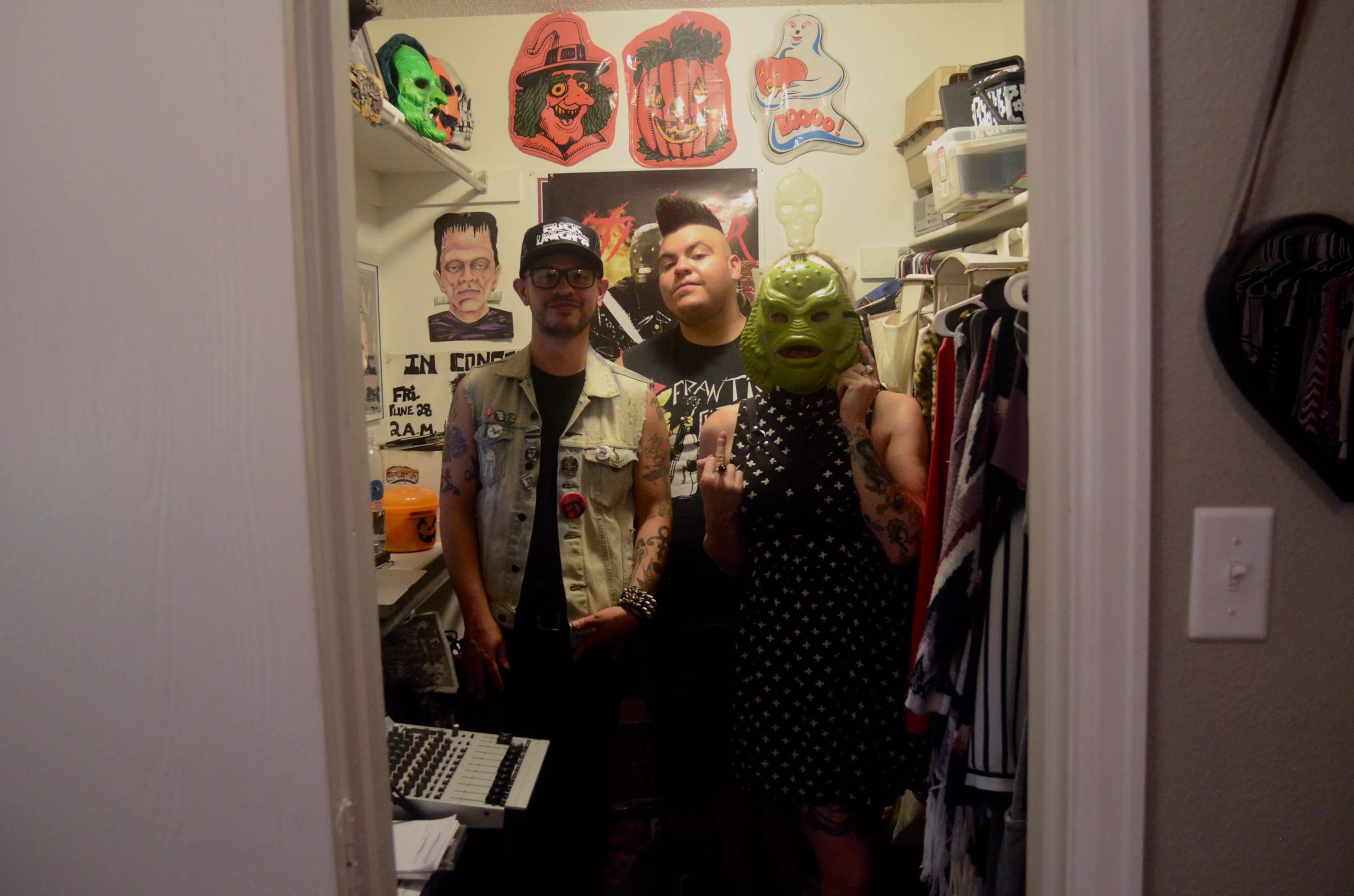 Sundown on Venus co-hosts Anthony Gautier and Octavio “Tavo” Urbina with Denver Scream Queen Theresa Mercado.