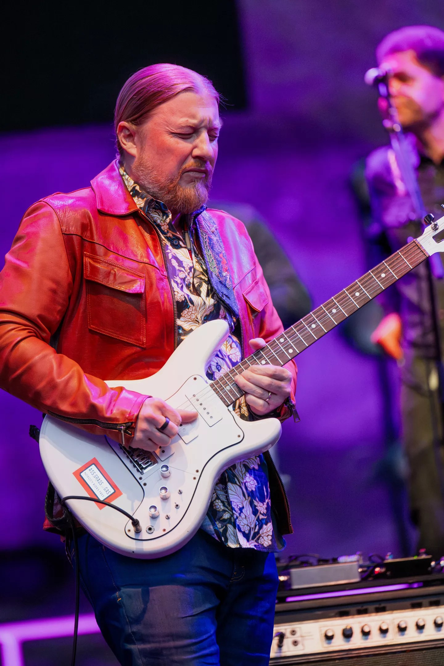 Tedeschi Trucks Band kicked off Colorado Day, Jerry Garcia’s birthday and the first show of its two-night run at Red Rocks by bringing out the late Grateful Dead guitar player’s old axe. The “Travis Bean” guitar, emblazoned with a sticker that read “Ass, Grass or Gas. Nobody Rides Free,” was played by Derek Trucks for covers of the Dead’s “Franklins Tower” and Derek and the Dominos’ “Any Day” to open the show.