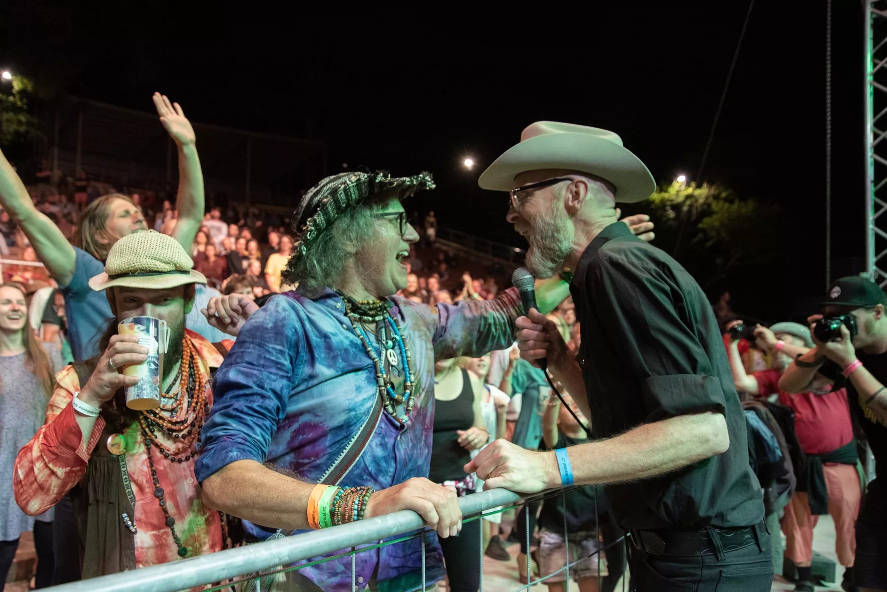 Slim Cessna interacts with a congregation member during a show in the Czech Republic over the summer.