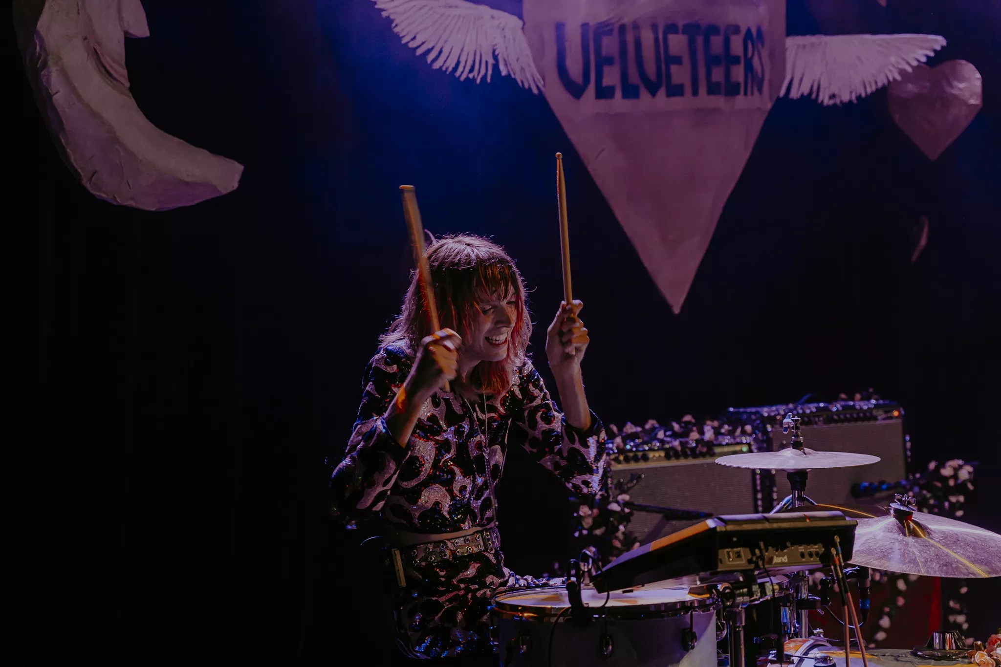 The Velveteers are known for a unique setup featuring two drummers alongside Demi on guitar and vocals.