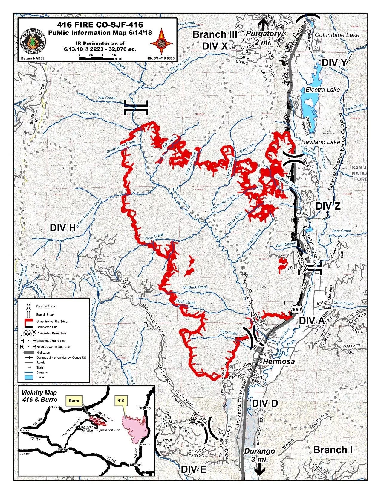 A map of the 416 Fire as of 8 a.m. on June 14