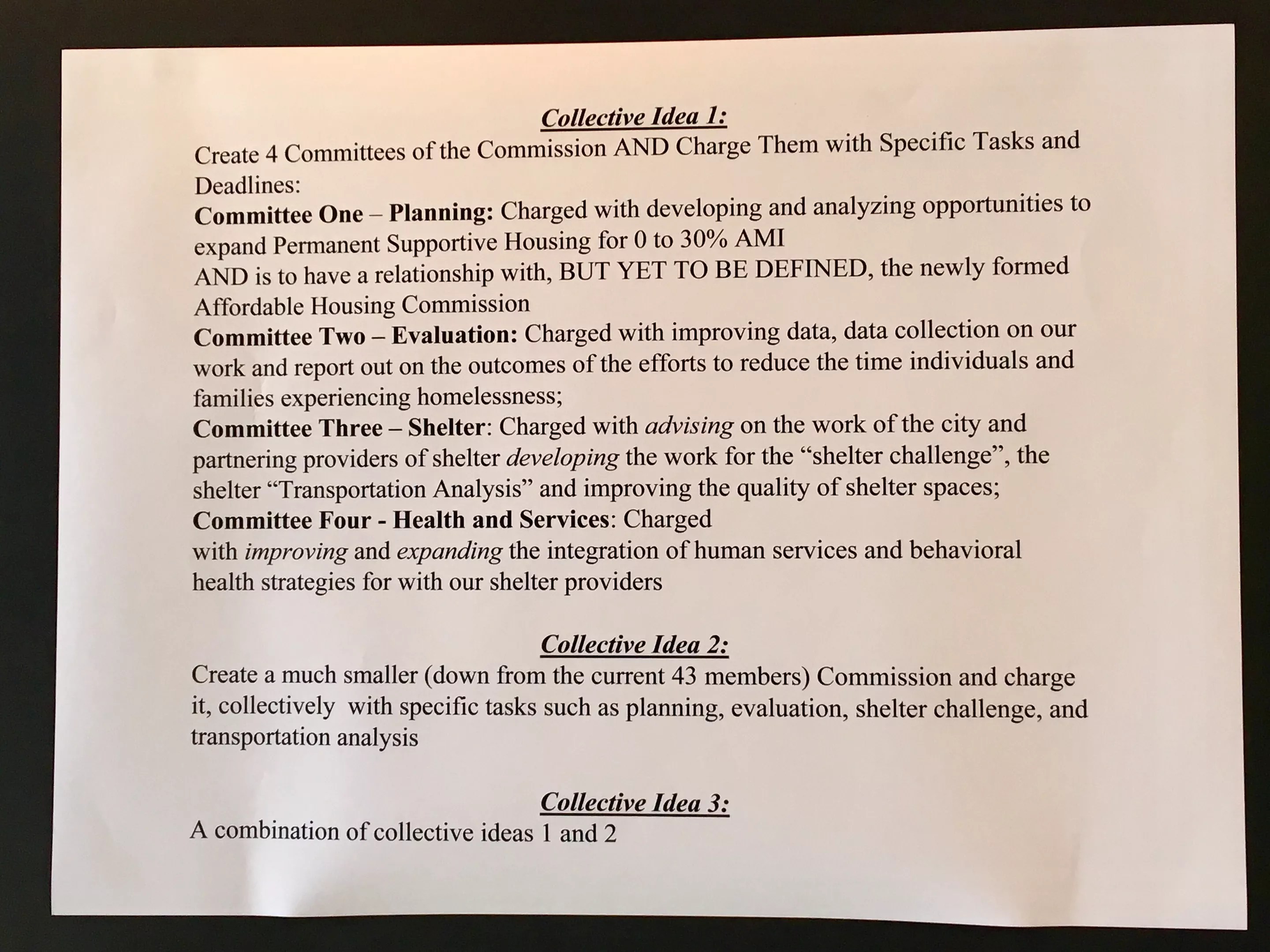 Soliván then unveiled three different options to restructure the commission. “My goal is to have this body be a functioning body that can make decisions about how we engage in this work,” he said.