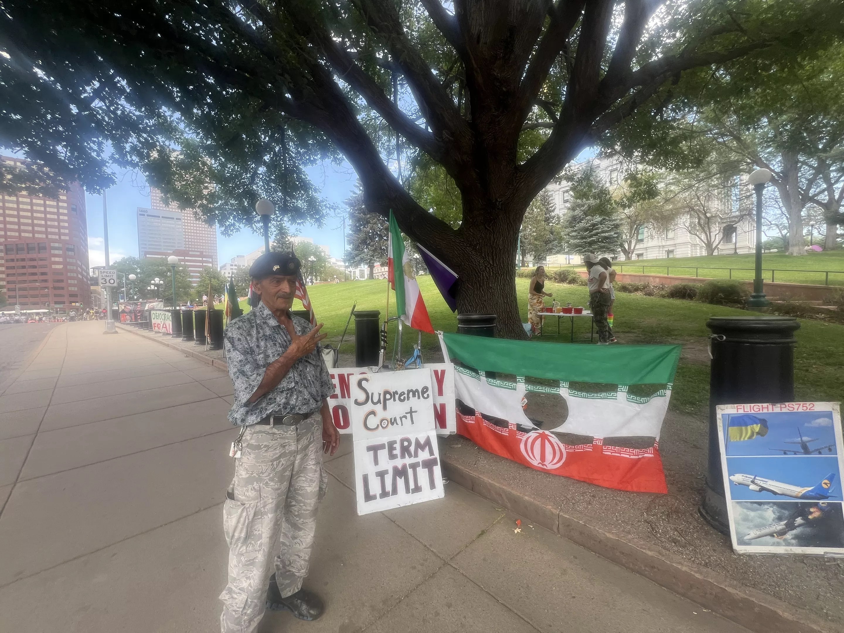 Kiani had come to Denver to study electrical engineering just months before Khomeini seized power. He has never been able return home. Four decades later, retired, he felt it was time to act. Printing posters and flyers, he settled in to the corner by the Capitol every Friday, Saturday and Sunday in July of 2021, talking to people about the need for secularism, for freedom, for peace in Iran. Since then, he’s missed only a few days, when weather was particularly brutal.