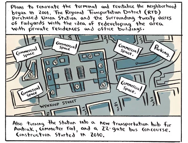 Cartoonist Karl Christian Krumpholz has been exploring Denver and then sharing his discoveries with the city for years. This time, he’s taking us on a ride through the history of Union Station, a vestige of Denver’s past that underwent a massive renovation that transformed it into a multi-modal transportation complex a decade ago.