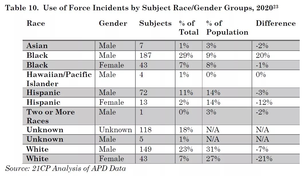 That’s not all. The report also establishes that the APD has disproportionately brutalized Black men.