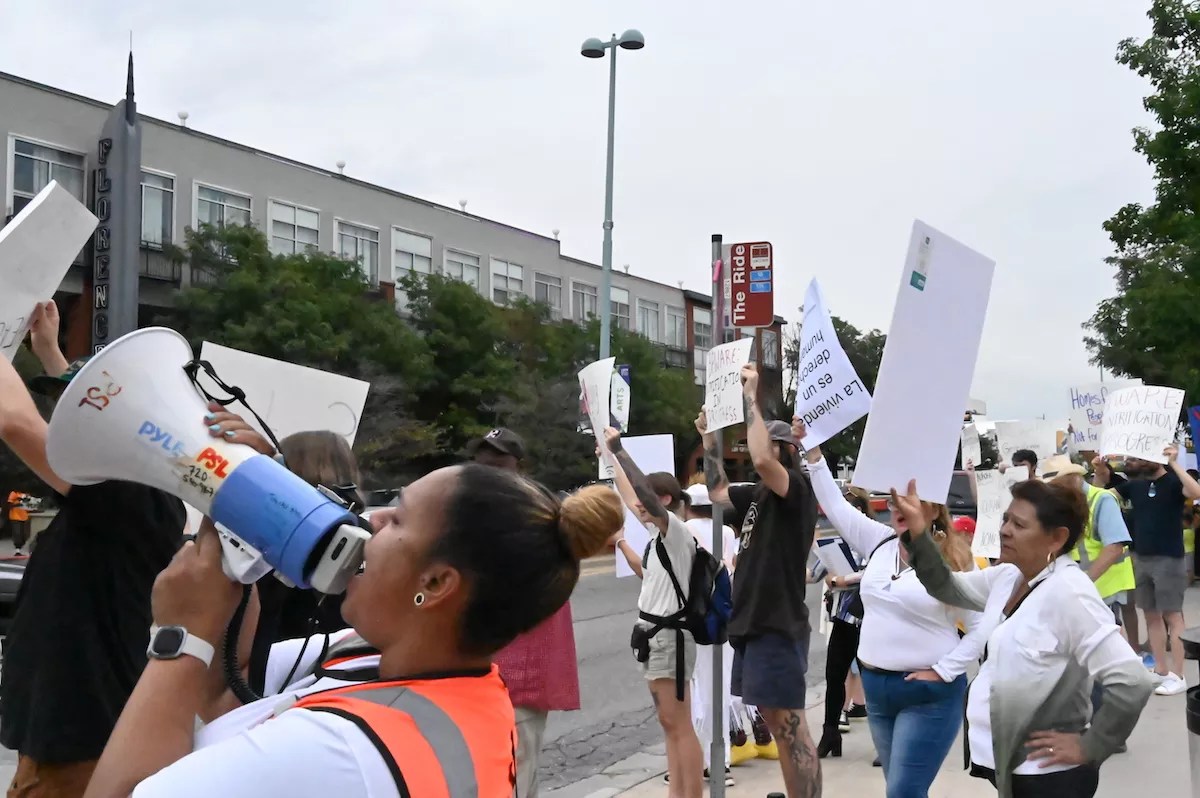 Allegations of “broken appliances,” “no smoke detector” and “poorly maintained staircases” were plastered on protest posters Saturday during the demonstration, which saw about seventy protesters blaring music from speakers and chanting “Many cultures, one voice” in several languages – including Spanish, Karen and Swahili.