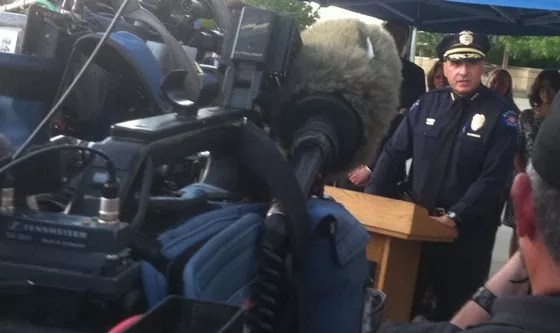 During a just-completed news conference about last night’s shooting at the Aurora Town Center Century 16 during a midnight screening of The Dark Knight Rises, Aurora Police Chief Dan Oates was asked by numerous national reporters to confirm reports that accused gunman James Holmes had identified himself as the Joker and dyed his hair to resemble the villainous character. Oates did not answer the question.