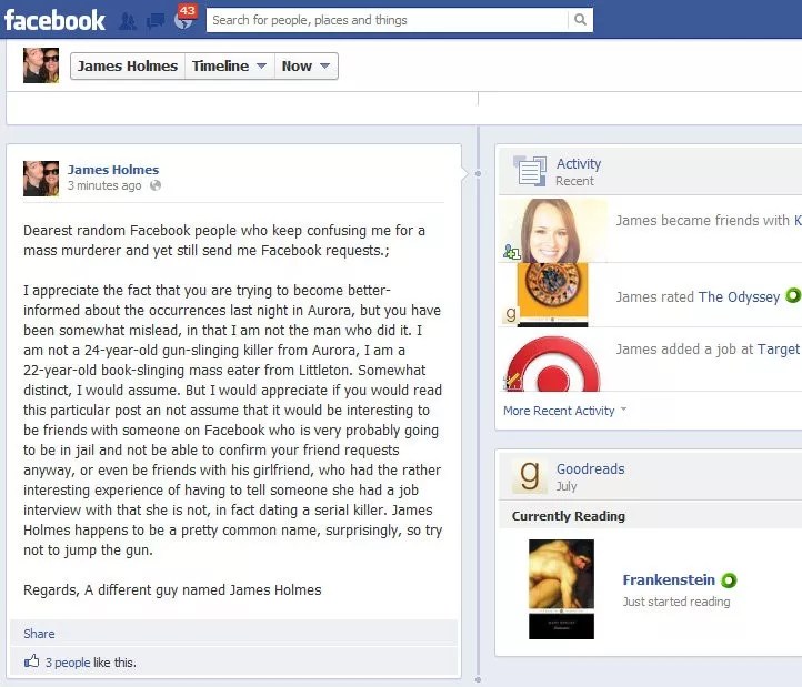 James Holmes – not that James Holmes – gets Facebook slammed after Aurora theater attack