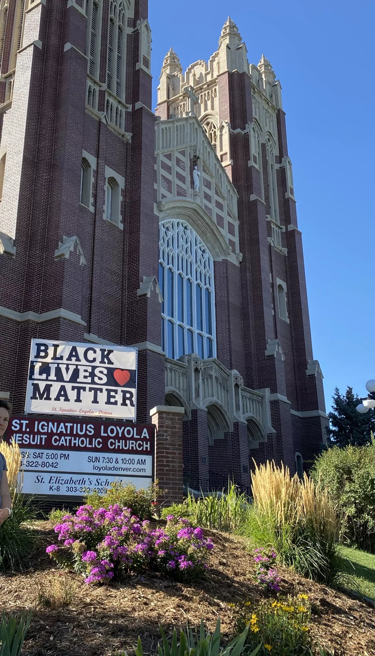 Across the street from City Park stands Colorado’s only Jesuit parish, St. Ignatius of Loyola Catholic Church. Since last September, the sign in front of the church at 2309 Gaylord Street announcing mass times and other information had also boasted a Black Lives Matter banner. But earlier this month, the banner was torn from the metal frame and disappeared.