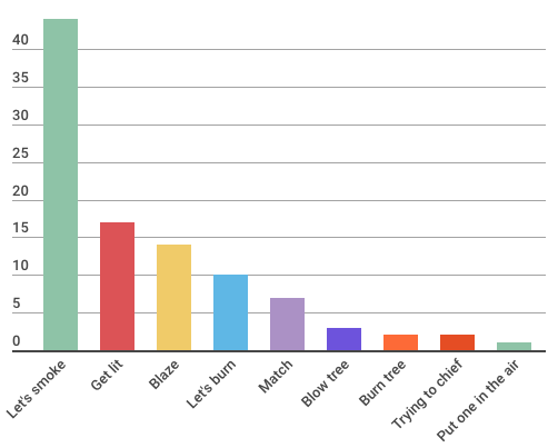 “Let’s smoke” was twice as popular as any other term, and Blue Dream had almost double the mentions of any other strain. Here’s the breakdown: