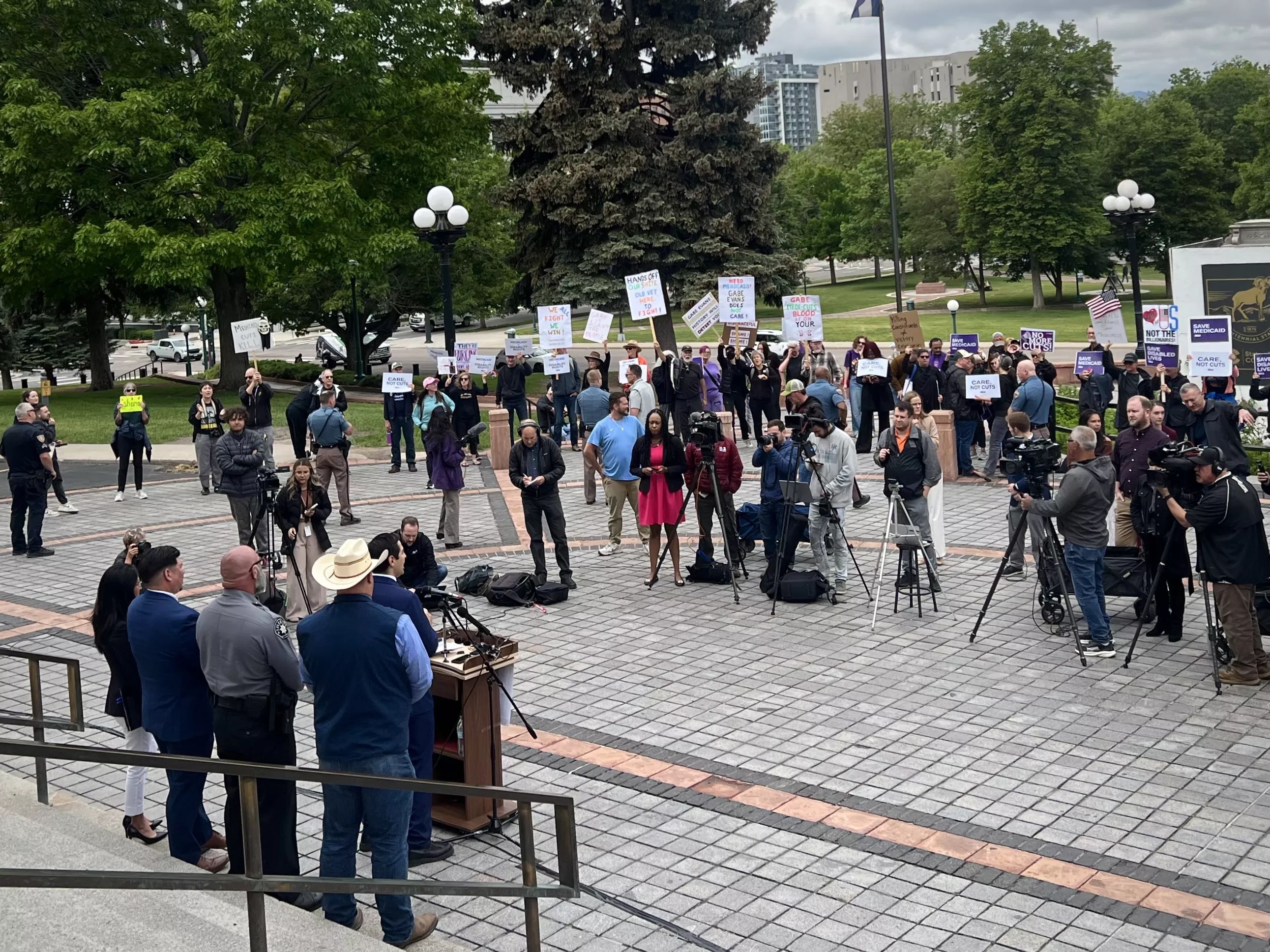 Boebert and Evans were drowned out by screams and boos from protesters during their Denver press conference celebrating the bill’s progress on Thursday, May 29. Around fifty people gathered outside the State Capitol Building, armed with signs and chants condemning the Republicans for supporting the bill because of its impact on Medicaid.