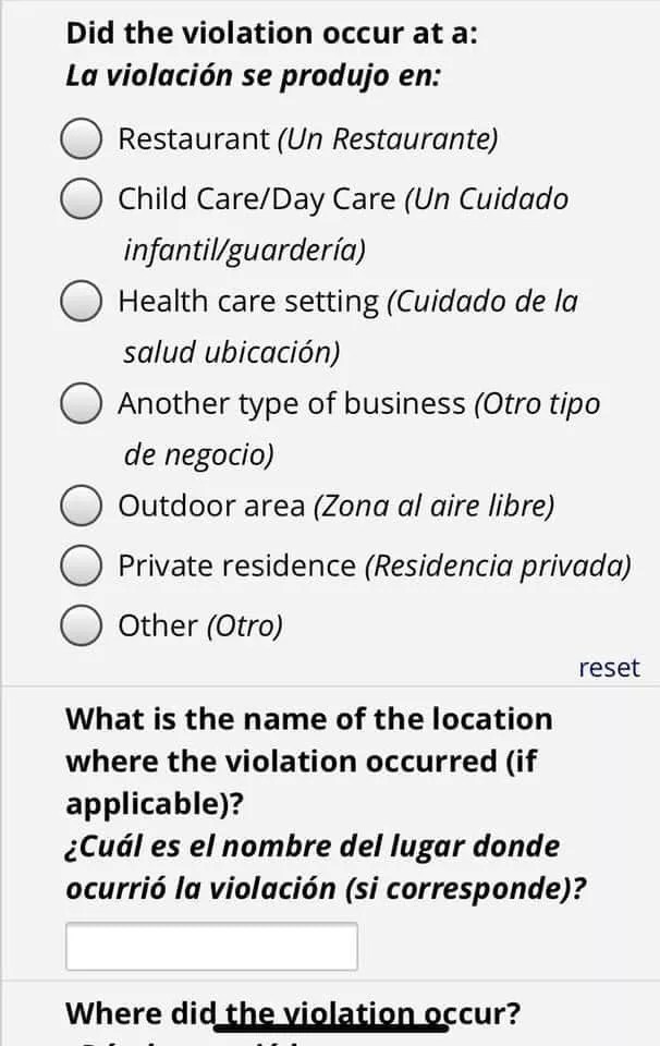 But if you want to report violations at “a current gathering,” no need to worry about creating an electronic trail: You can just contact the county call center at 720-776-0822.