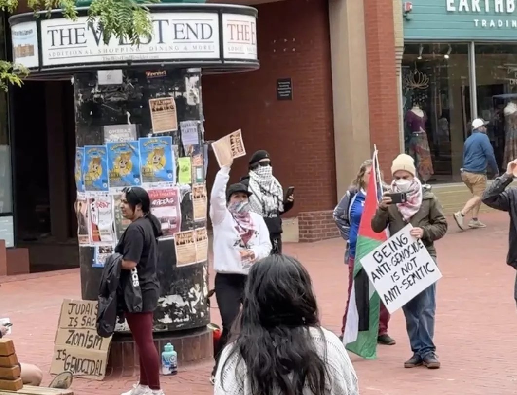 Pro-Palestinian protesters held signs a block away from the Boulder Jewish Festival.