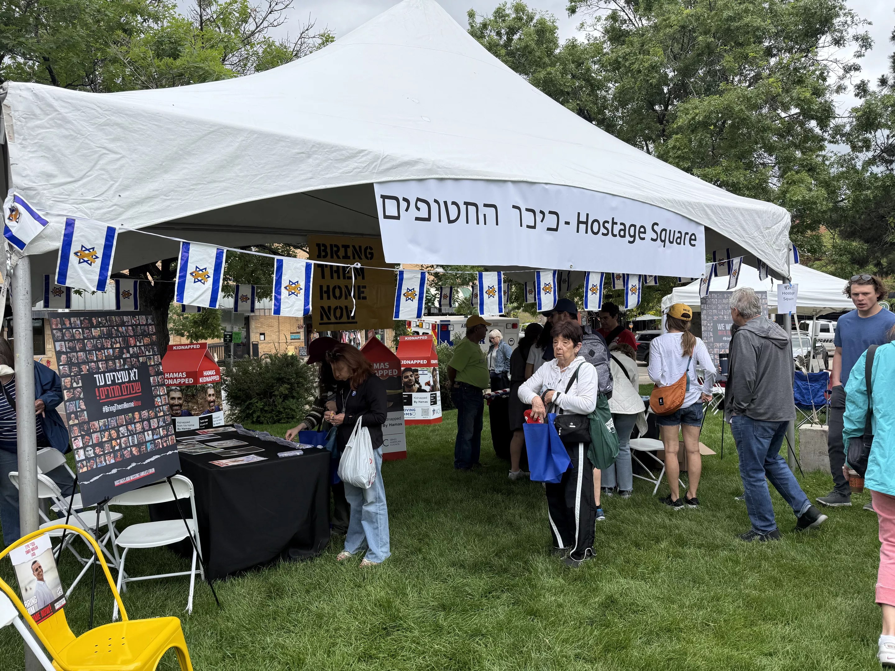 The festival had dozens of vendors’ booths; several, like Hostage Square, highlighted the hostages taken by Hamas during its October 7, 2023, attack on Israel, which spurred the current war in Gaza. At noon, the weekly Run for Their Lives walk to raise awareness of the hostages still in captivity set off on the same route it’s taken every week for over a year. “We always planned for today to have a walk as part of this festival,” said Jonathan Lev, executive director of the Jewish Community Center. “After the horrible attack last week, we knew we needed to elevate their voices further.”