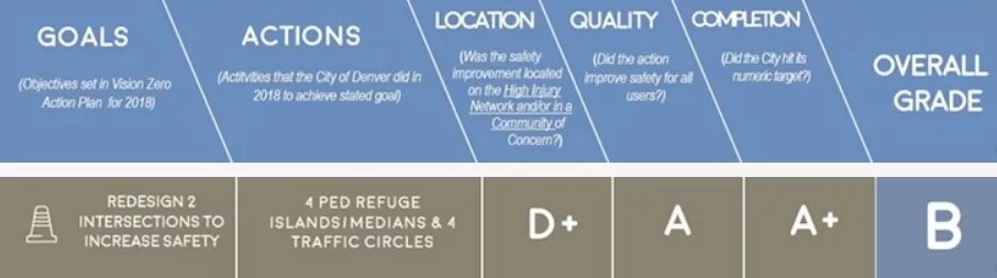 The Denver Streets Partnership has issued a report card for 2018 in regard to Vision Zero, an action plan launched by Mayor Michael Hancock that aims to eliminate traffic deaths in the Mile High City by 2030. And while there are some bright spots, the overall mark of “C” is no one’s idea of a triumph.