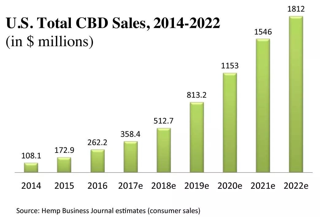 But none was as thorough as the recent mid-year report on the CBD market from the Hemp Business Journal, one of the more trusted sources in the industry. Using some of the most advanced data-tracking firms in the marijuana industry, including BDS Analytics and New Frontier Data, the Journal compiled roundups and predictions that show a rapidly growing field of CBD products that still has plenty of room to grow.