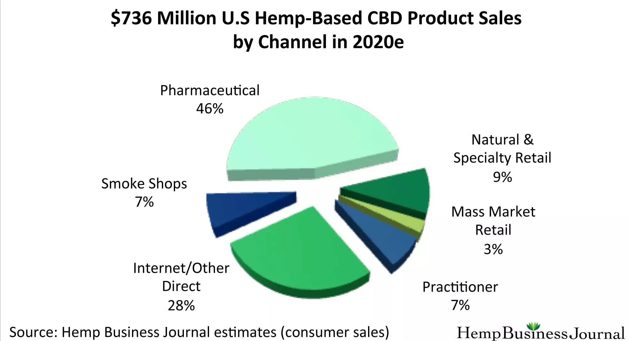 “There are numerous market forces impacting the growth of these channels. HBJ predicts any kind of scheduling (or de-scheduling) action by DEA, increased FDA regulation, and the beginning of pharmaceutical sales (by GW Pharmaceuticals) will have the greatest impact on these channels as the CBD market develops,” the report says.